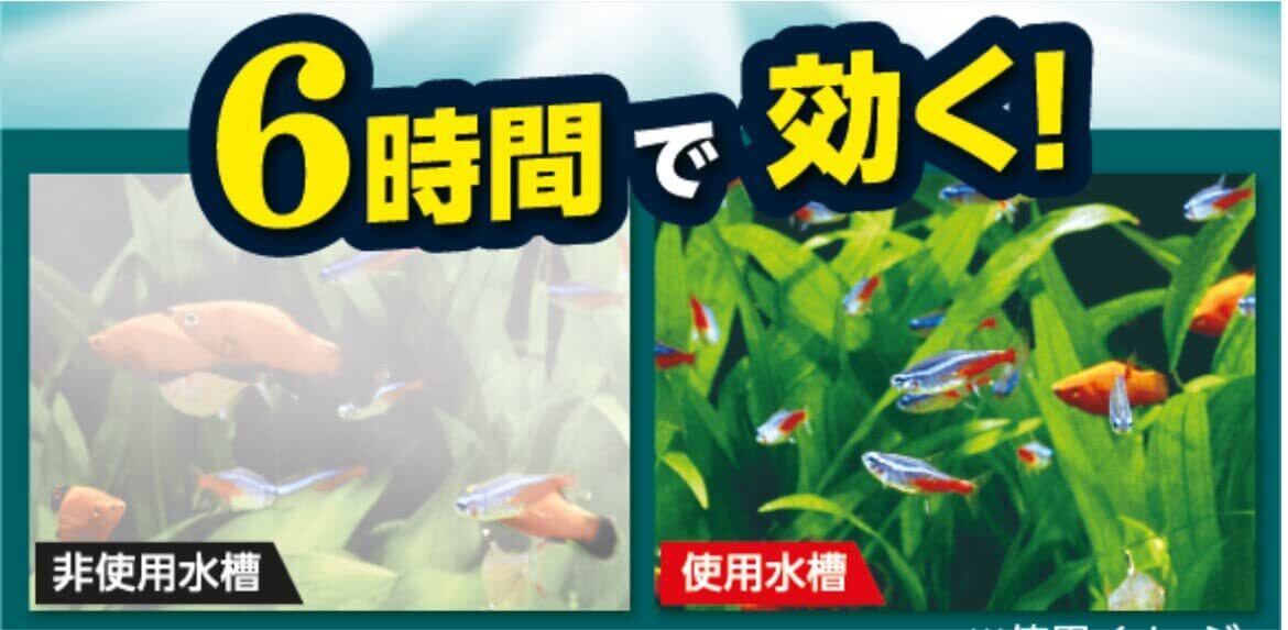 水槽の水が濁った時、水10Lに対して2.5mlの割合で入れ、よくかき混ぜてください。