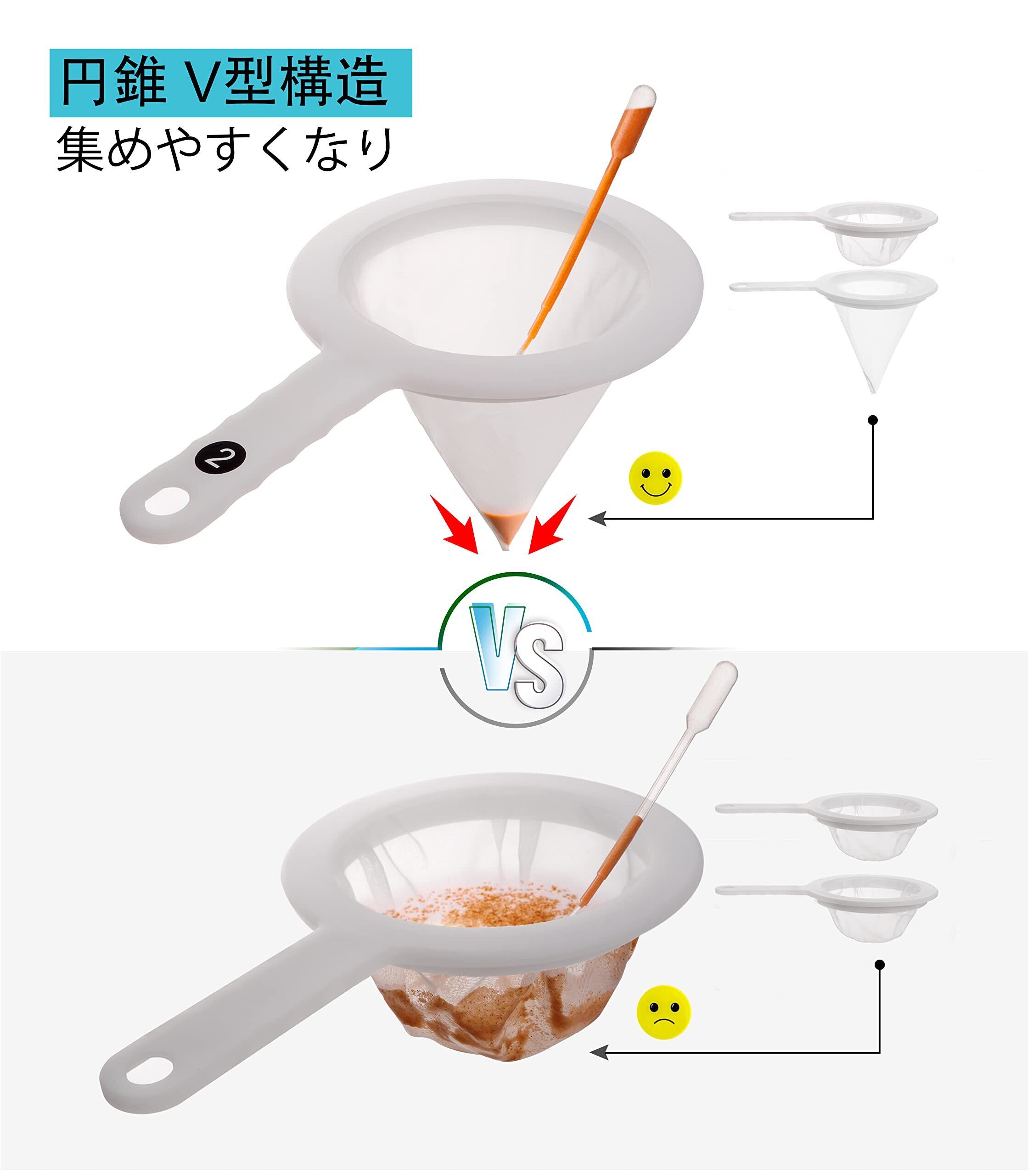 デザイン: 丸い粗い目のメッシュは塩水エビの殻を濾し、 円錐v型細かい目のメッシュは塩水エビを集めやすくになります。