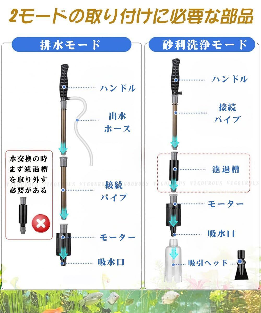 【新着商品】【2026年新グレード】電動 水換えポンプ USB給電 5V3A 3in1多機能 水換え 砂利洗浄 水槽水換え 清掃 底砂クリーナー アクアリウム 浄水器 800L/h流量 長さ調整可能 組み立て簡単 楽に水槽清掃 1.5mホース 日本語説明書付き