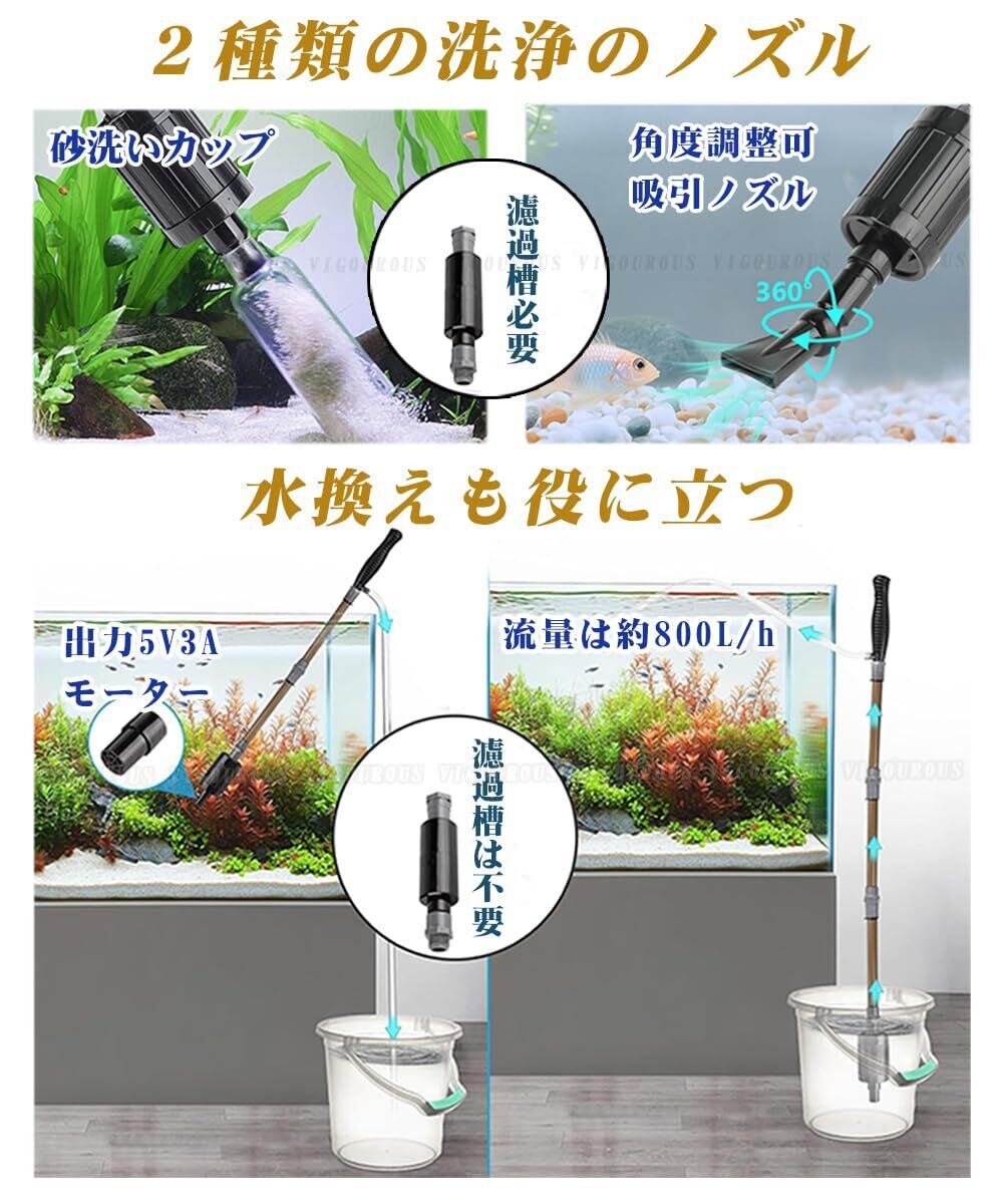 【2026年新グレード】電動 水換えポンプ USB給電 5V3A 3in1多機能 水換え 砂利洗浄 水槽水換え 清掃 底砂クリーナー アクアリウム 浄水器 800L/h流量 長さ調整可能 組み立て簡単 楽に水槽清掃 1.5mホース 日本語説明書付き