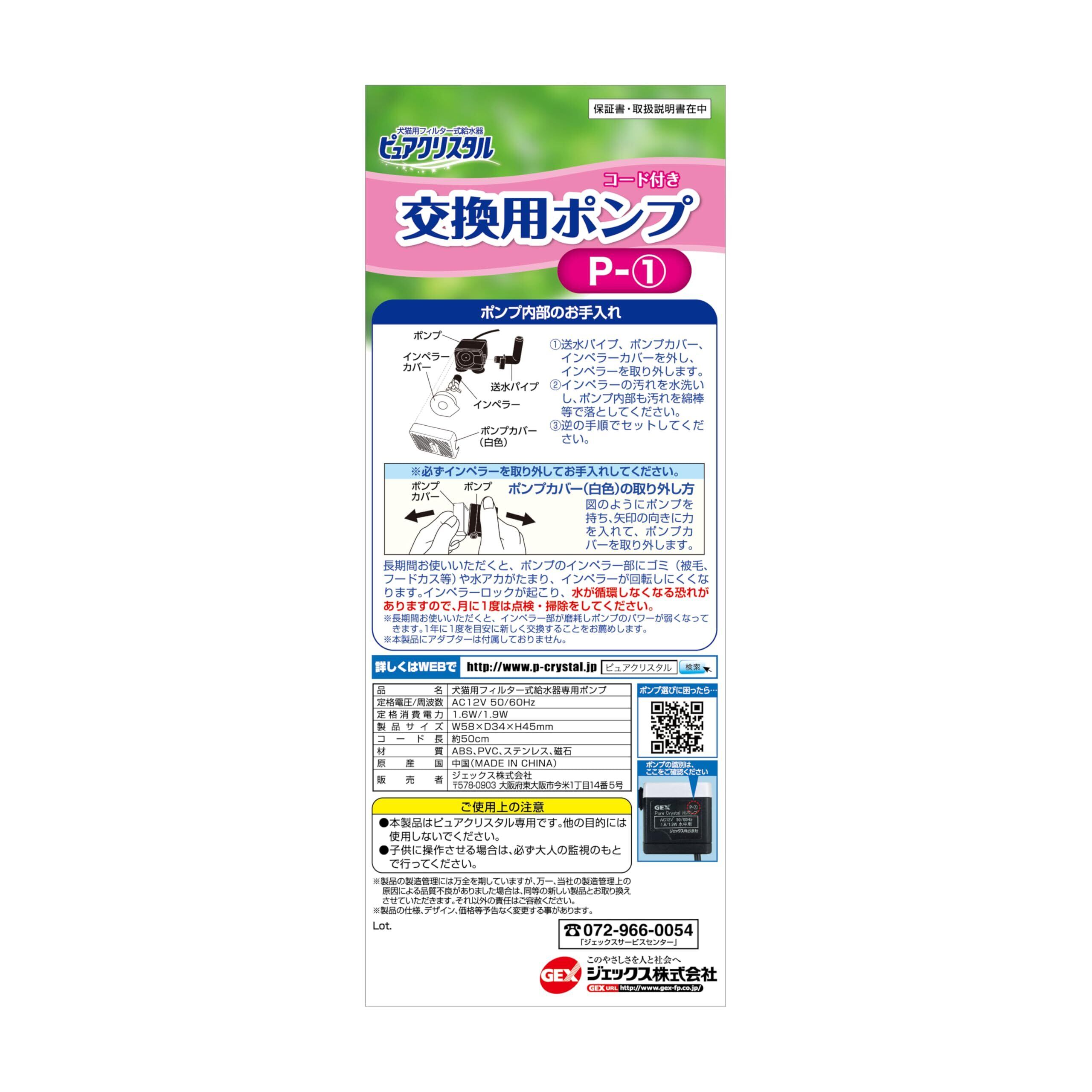 GEX ピュアクリスタル 交換用ポンプ P-1 対応機種 超小型犬用 全猫用 サークル・ケージ用 交換・スペア用