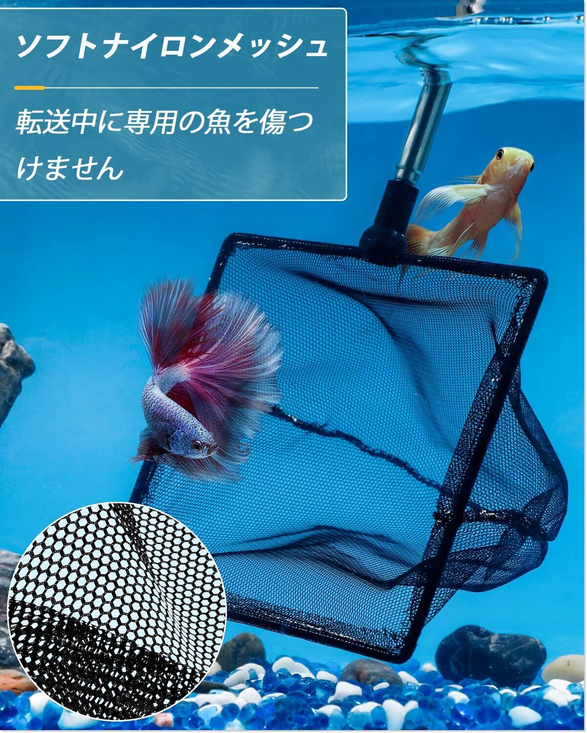 ファインナイロンネット:よく編まれた柔軟なナイロンネットは転移中の負傷のリスクを減少させた。特に闘魚、金魚、仙魚、慈鯛などに適しています。
