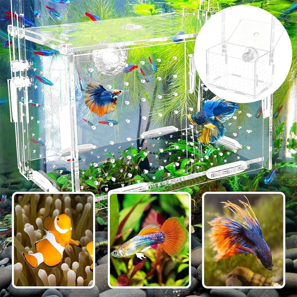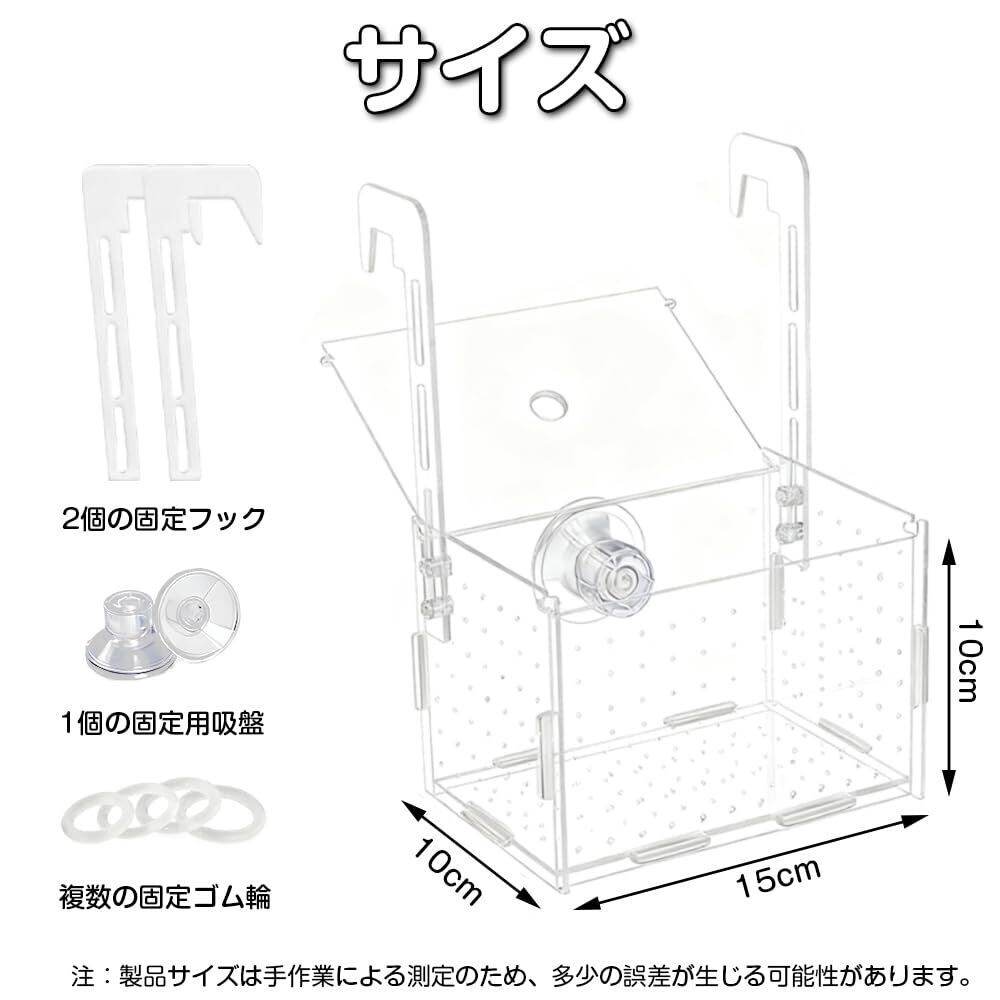 稚魚 水槽 隔離ケース 15x10x10cm メダカボックス 仕切り 透明 アクリル 繁殖隔離ボックス メダカ 熱帯魚 飼育ケース 繁殖 孵化 産卵箱 産卵ケース 魚の繁殖隔離ボックス 水槽セット用 多機能 省スペース 取り付け簡単 吸盤付き