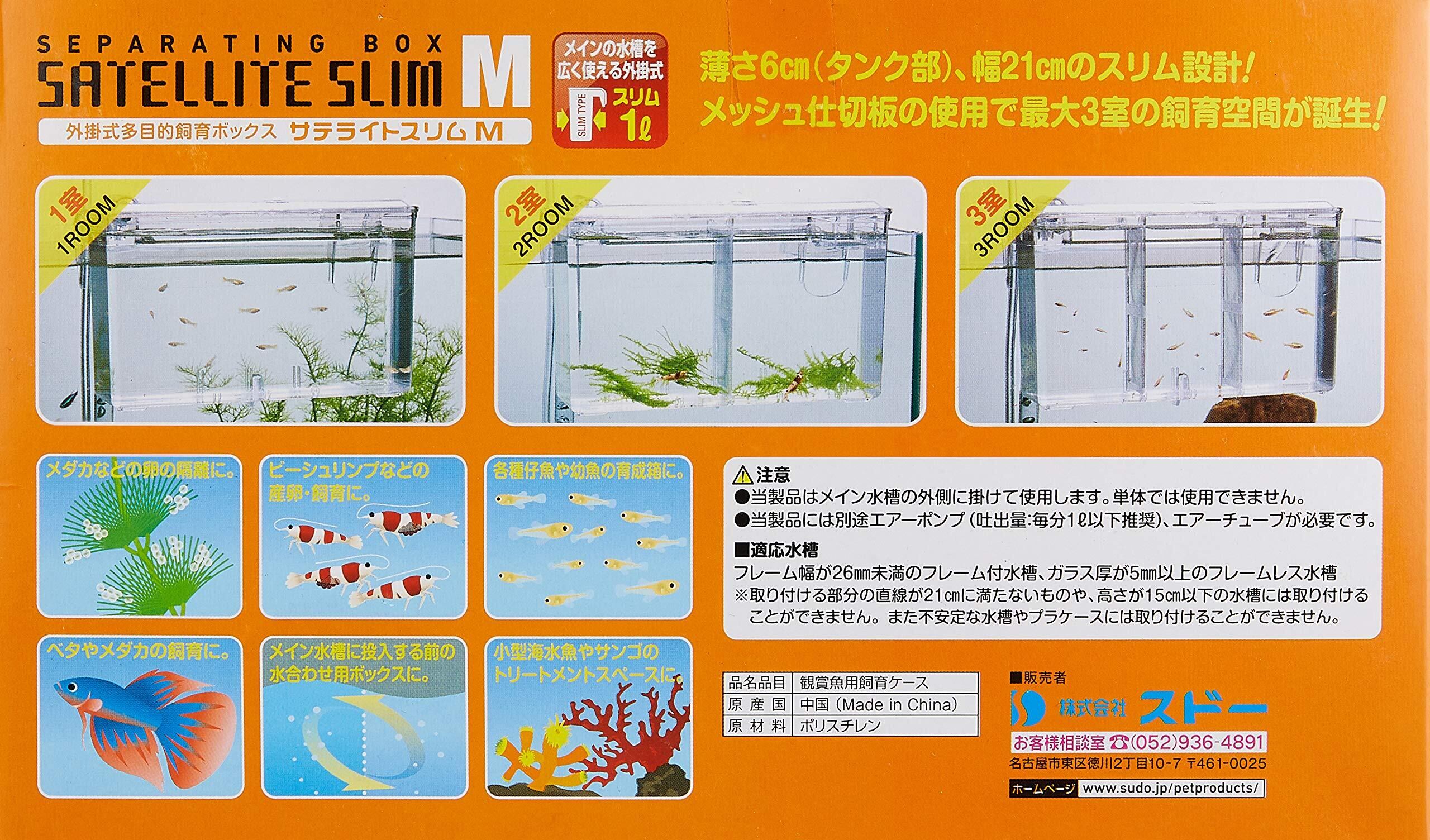 SUDO(スドー) サテライトスリム M 外掛式 多目的飼育ボックス シュリンプ エビ 小型熱帯魚 水合わせ 稚魚 幼魚 幅21cm 奥行き6cm S-5904