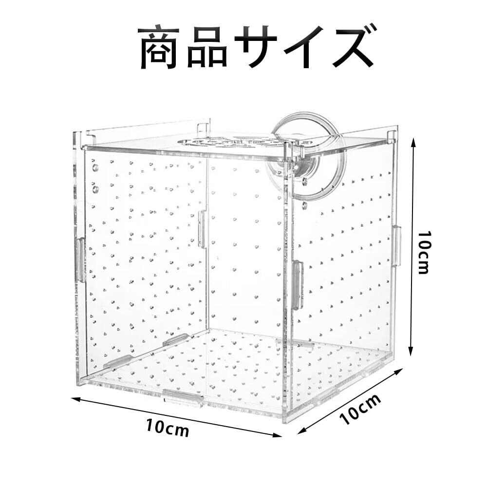 稚魚 繁殖隔離ボックス 透明 アクリル 10x10x10cm 吸盤付き 水槽 隔離ケース 産卵ケース 孵化 産卵箱 稚魚飼育箱 魚飼育ボックス 魚分離ボックス 水族館アクセサリー 取り付け簡単 多機能産卵箱 稚魚保護 省スペース