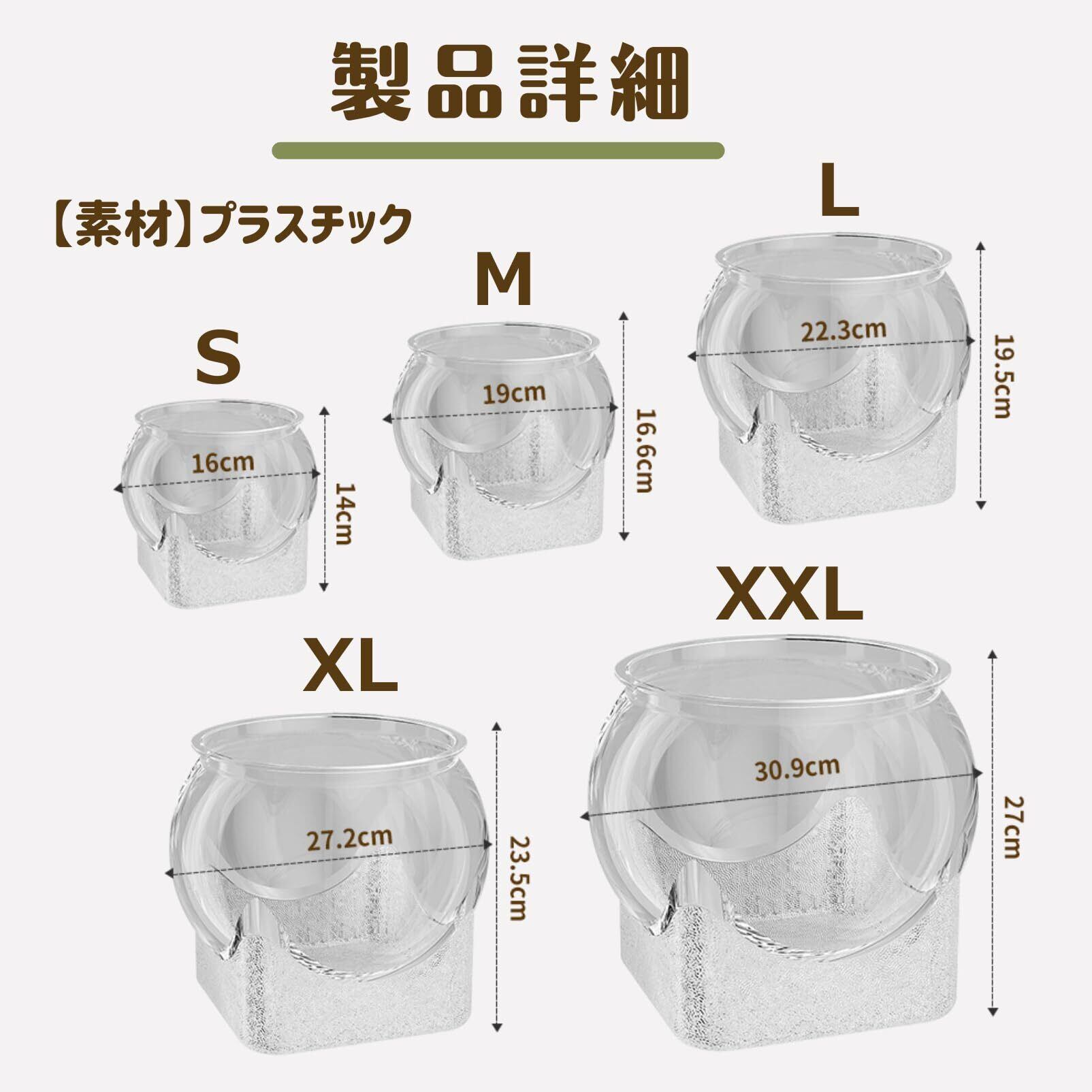 【サイズ】S:高さ14cm幅16cm、M:高さ16.6cm幅19cm、L:高さ19.5cm幅22.3cm、XL:高さ23.5cm幅27.2cm、XXL:高さ27cm幅30.9cm【素材】プラスチック