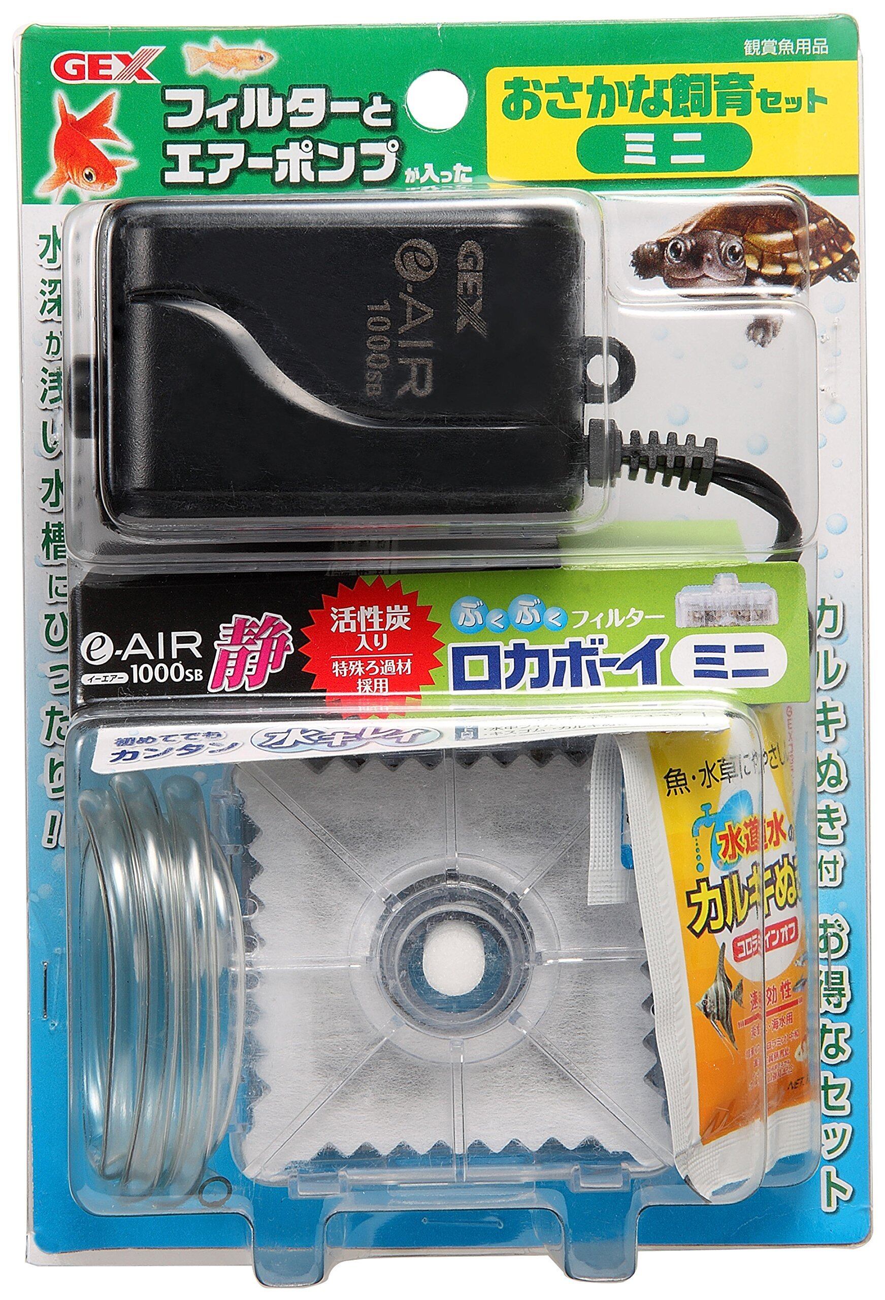 フィルター(ロカボーイ ミニ)とエアーポンプが入った、水深4.5cm以上の水深が浅い水槽でのお魚、カメ飼育にピッタリの用品セット。 水をキレイにするぶくぶくフィルター ロカボーイミニとエアーチューブ、エアーポンプがセットになった水中フィルターセットです。 セット内容:エアーポンプ(イーエアー1000SB)、水中フィルター(ロカボーイ ミニ)、エアーチューブ、カルキぬき、キスゴム