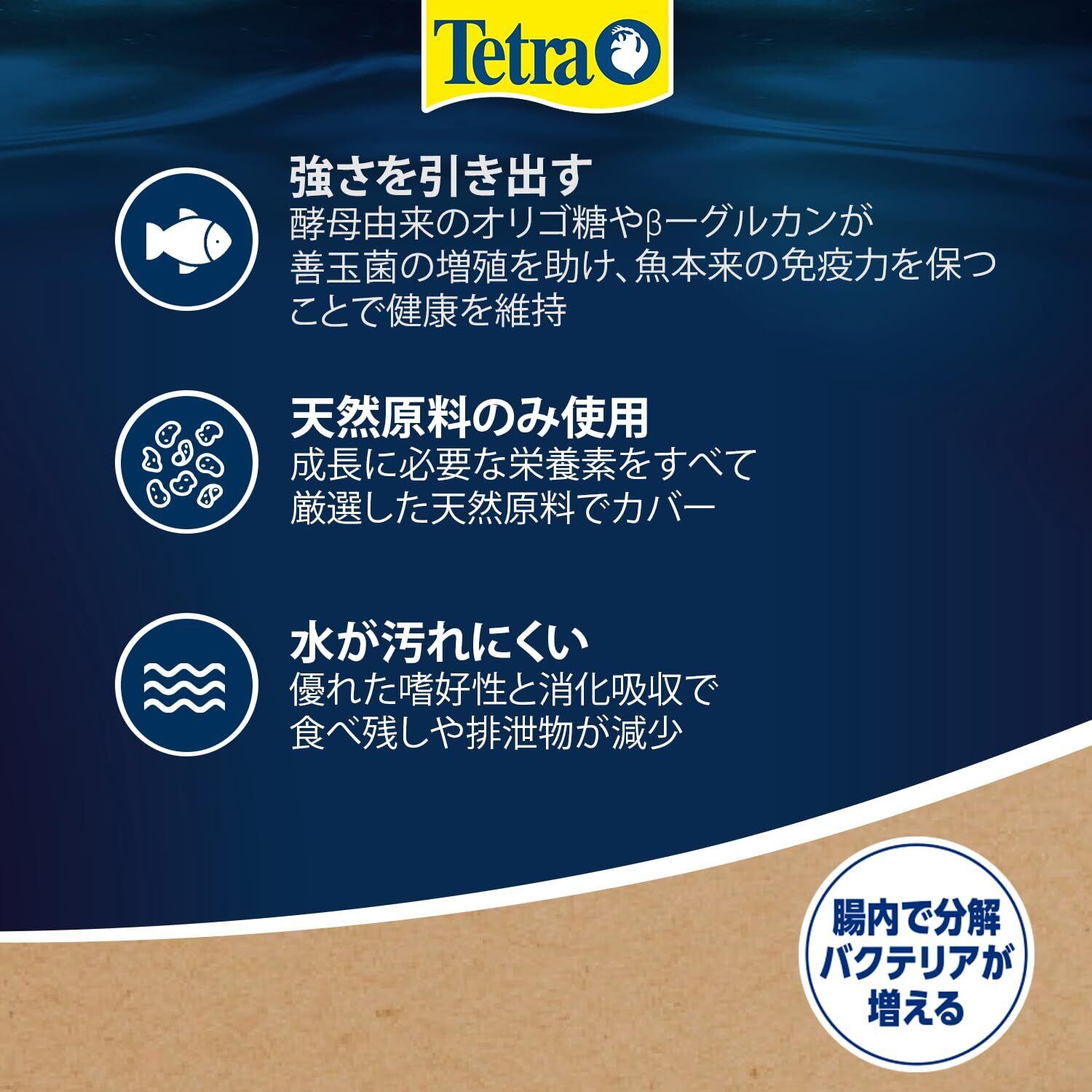●熱帯魚本来の強さを引き出すベーシックフード。あらゆる熱帯魚の健やかな成長を促します。●魚の腸内に住む善玉菌の増殖を助け、健康維持に役立てます。