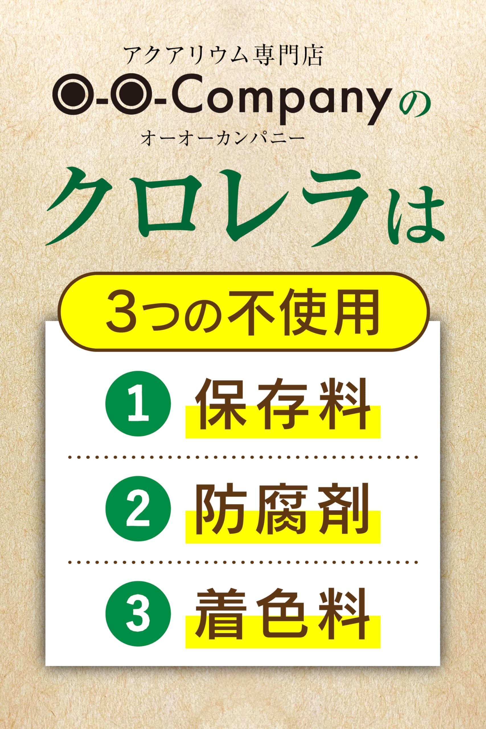 無添加で安全なクロレラ餌 O-O-(オーオー)の観賞魚用クロレラは、保存料、防腐剤、着色料を一切使用していない無添加の餌です。大切な金魚やメダカに安心して与えることができ、観賞魚の健康を損なうことなく、栄養を補給できます。無添加であることが、金魚やメダカの長寿と健康を支える大きなポイントです。