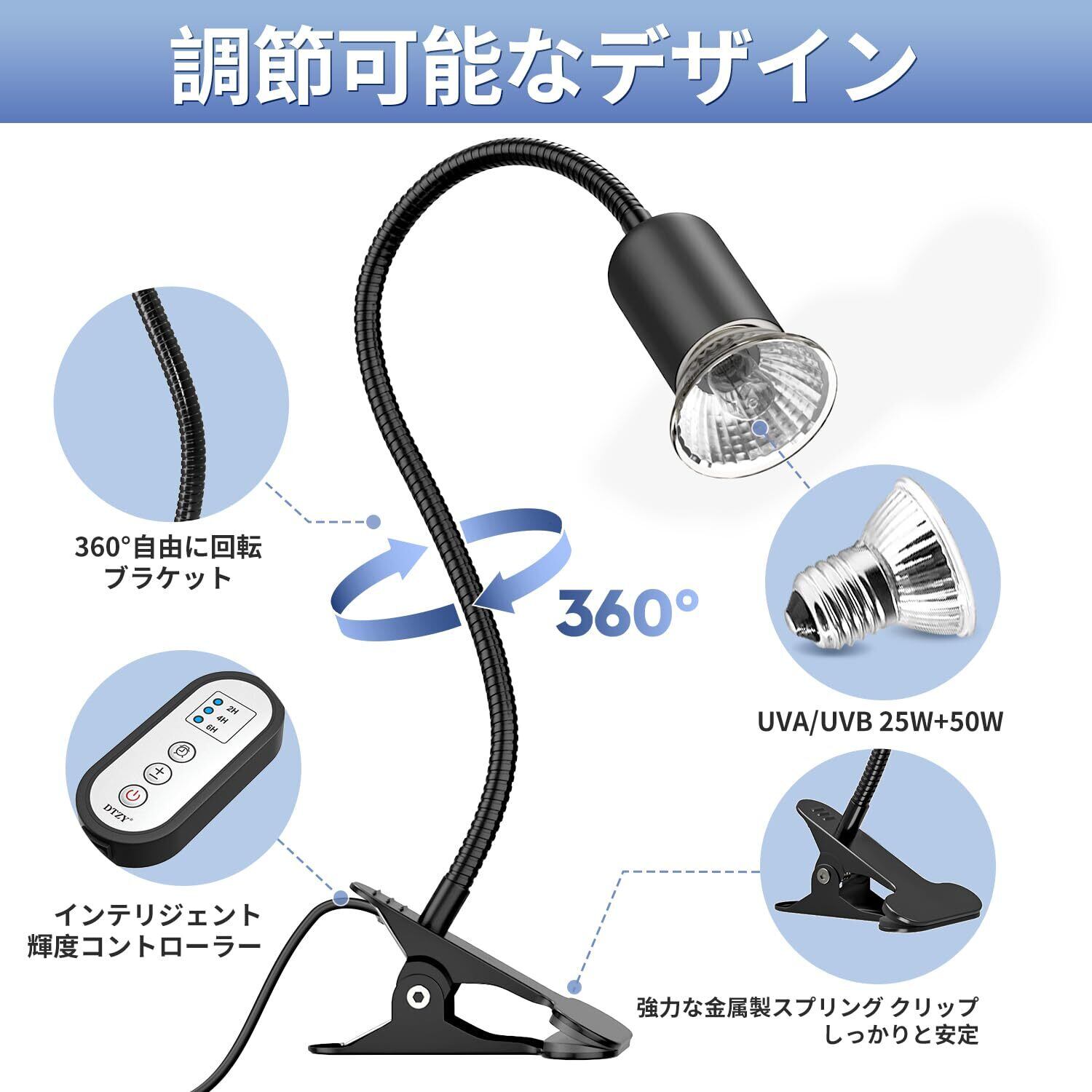 【数量限定】DTZY爬虫類 ライト 亀 バスキング ライト兼用 25W+50W保温電球 アナログ太陽 UVA&UVBランプ 24時間サイクルタイマー機能 明るさ調節可能 360度回転可能 爬虫類&両生類適用