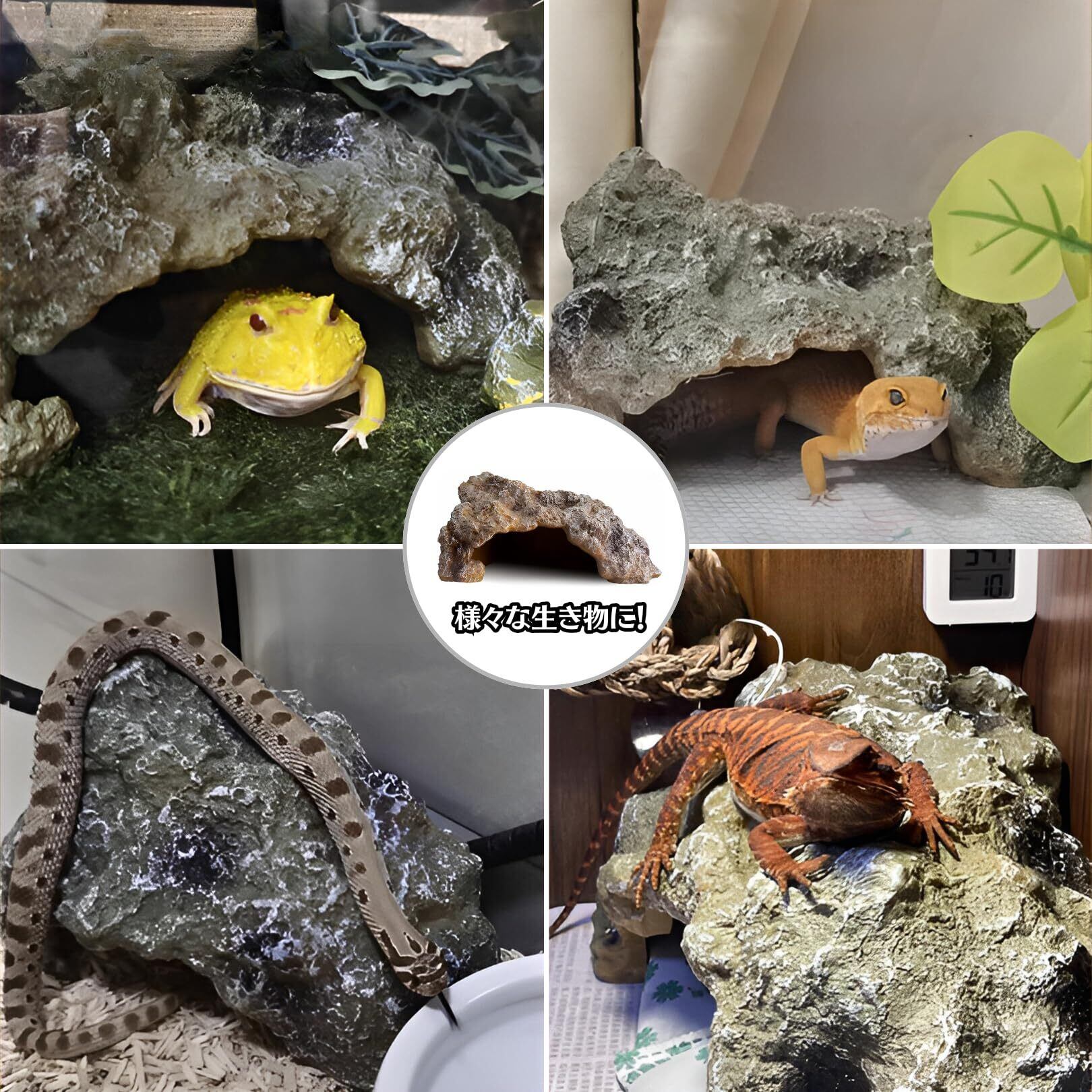 Charmoon 爬虫類 両生類 シェルター 岩 レオパ トカゲ 亀 ヘビ カエル 飼育 隠れ家 寝床 (Mサイズ)