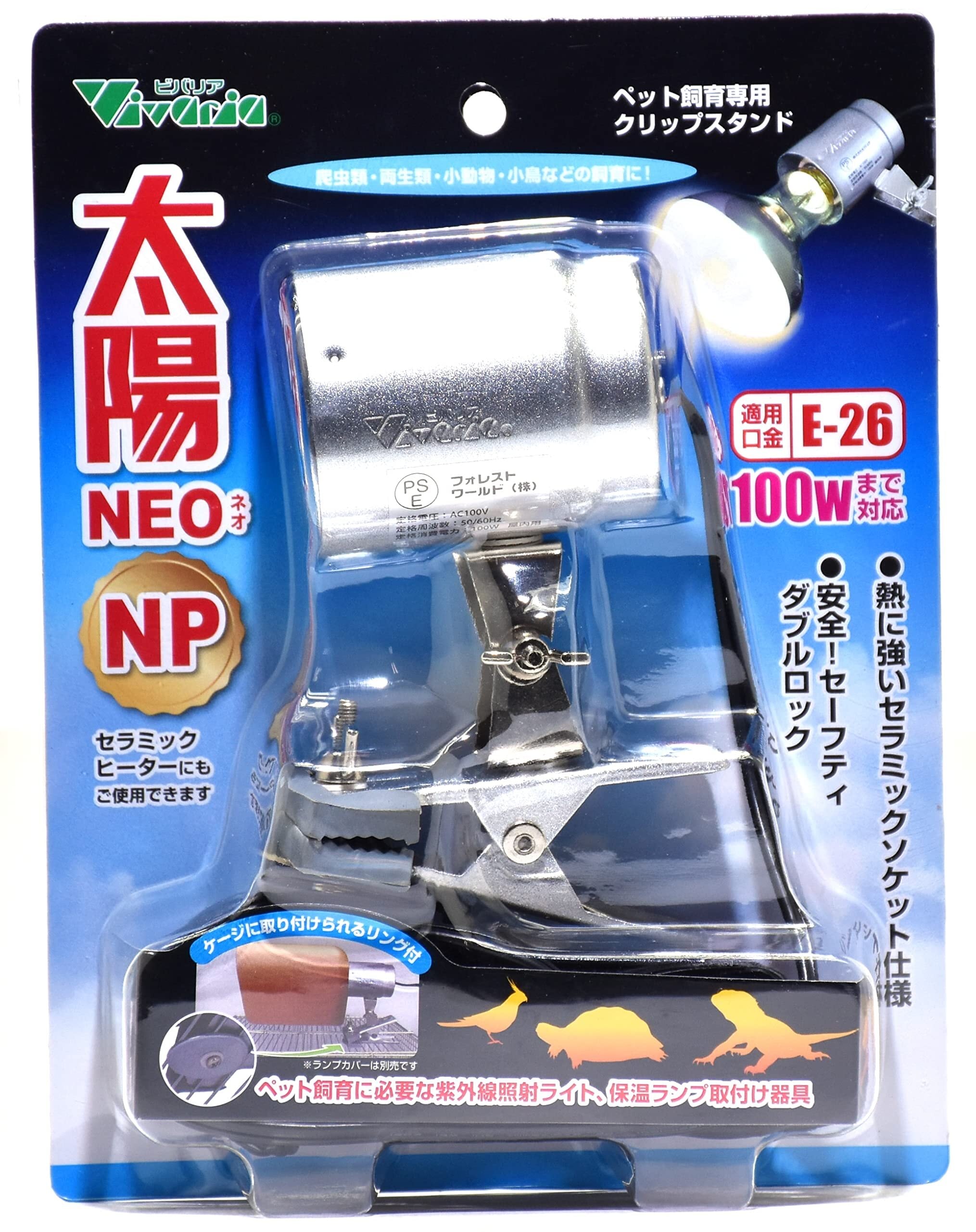 安全を考慮し、市販の爬虫類ゲージ用ランプステーにねじで固定できるセーフティダブルロックを採用。熱に強いセラミックソケット仕様。適用口金:E-26。消費電力100Wまでの白熱球、蛍光ランプ、セラミックヒーターに最適です。