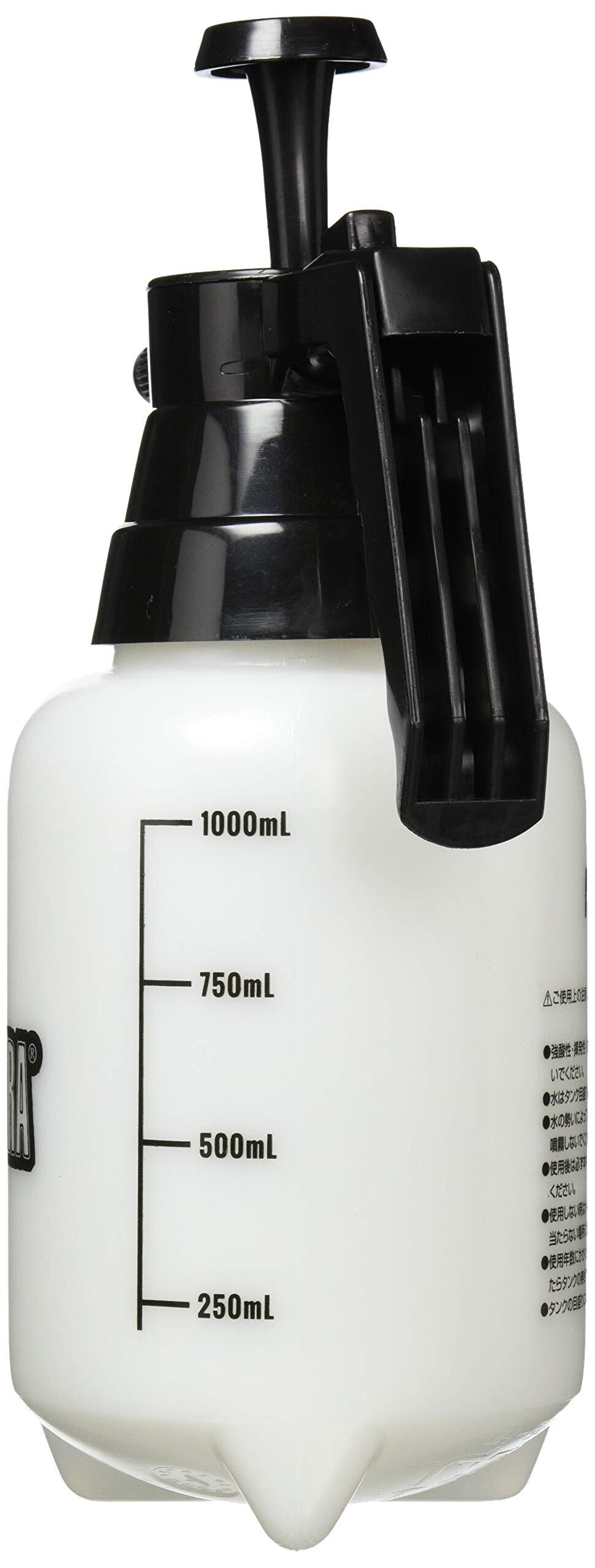 爬虫類・両生類飼育、テラリウム管理に最適な蓄圧式霧吹き。噴霧範囲、ミストの細かさが調整可能! ●レバーを押さなくても連続噴霧できるロック機能付き ●ノズルを回すと霧の広がりを調節可能 <ご使用方法>●;タンクから本体を外し、水を入れます。●キャップで本体とタンクをしっかりと締めます。●10-15回を目安にツマミを上下して加圧します。タンク内の圧力がいっぱいになるとツマミが重くなるので、それ以上は加圧しないでください。また、使用中に霧が弱くなったら再加圧してください。●レバーを押すと霧が出ます。レバーを押し下げた状態でレバーピンを前へ押し出してレバーを固定すると、連続して霧が出ます。止める時はレバーピンを押し下げて手前に引くとレバーが元の位置に戻ります。ノズルキャップを回すと霧の広がりが調整できます。●使用後は必ずキャップをゆっくり回してタンク内の圧力を抜いてください。 最大容量:約1,000mL