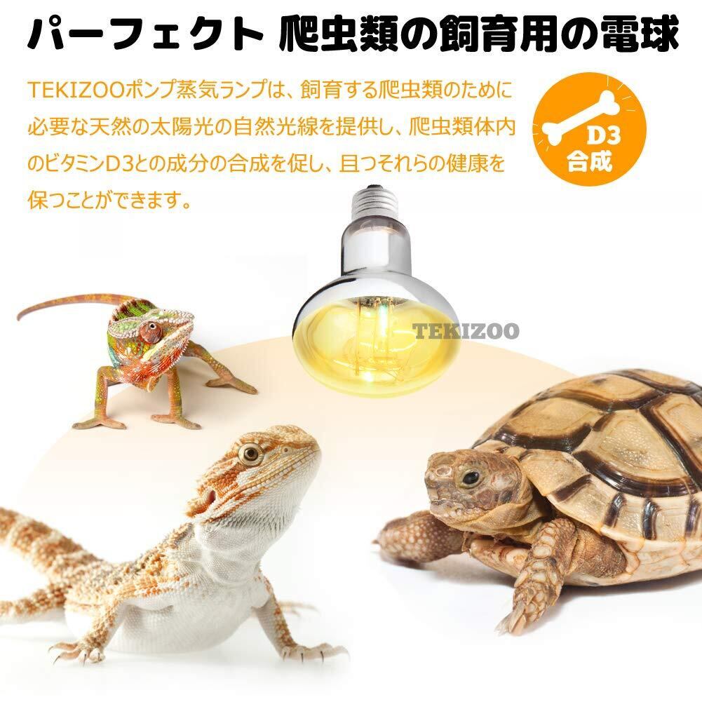 一つの電球によってUVA、UVB、ホットスポット及び視覚の光を提供し、TEKIZOOポンプ蒸気ランプは、飼育する爬虫類のために必要な天然の太陽光の自然光線を提供し、爬虫類体内のビタミンD3との成分の合成を促し、且つそれらの健康を保つことができます。