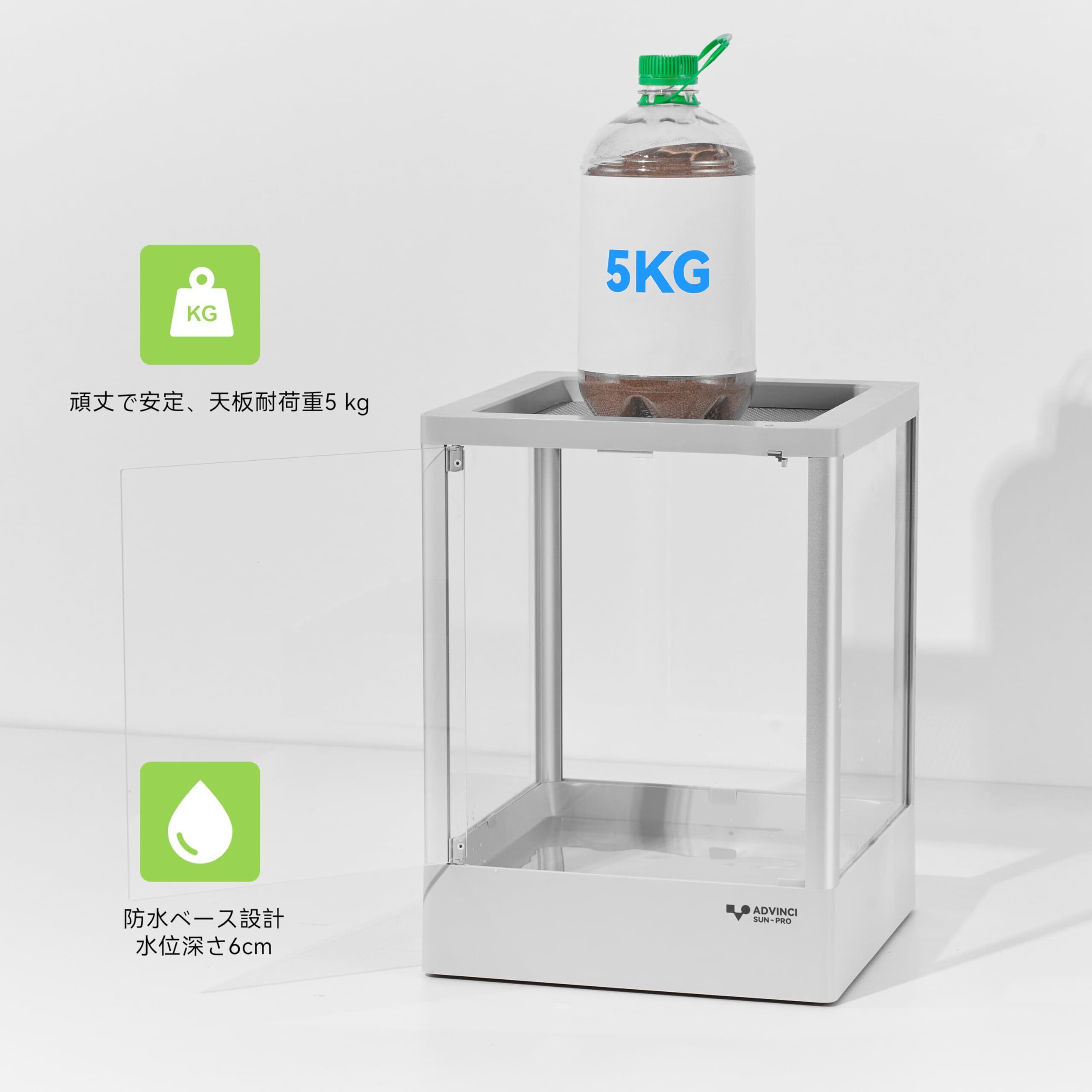 スタイリッシュなデザイン&お手入れ簡単: モダンなアルミ仕上げとシンプルなフレームがインテリアに自然に馴染みます。取り外し可能なパーツ構造で掃除も簡単。飼育環境のカスタマイズも自由自在です。
