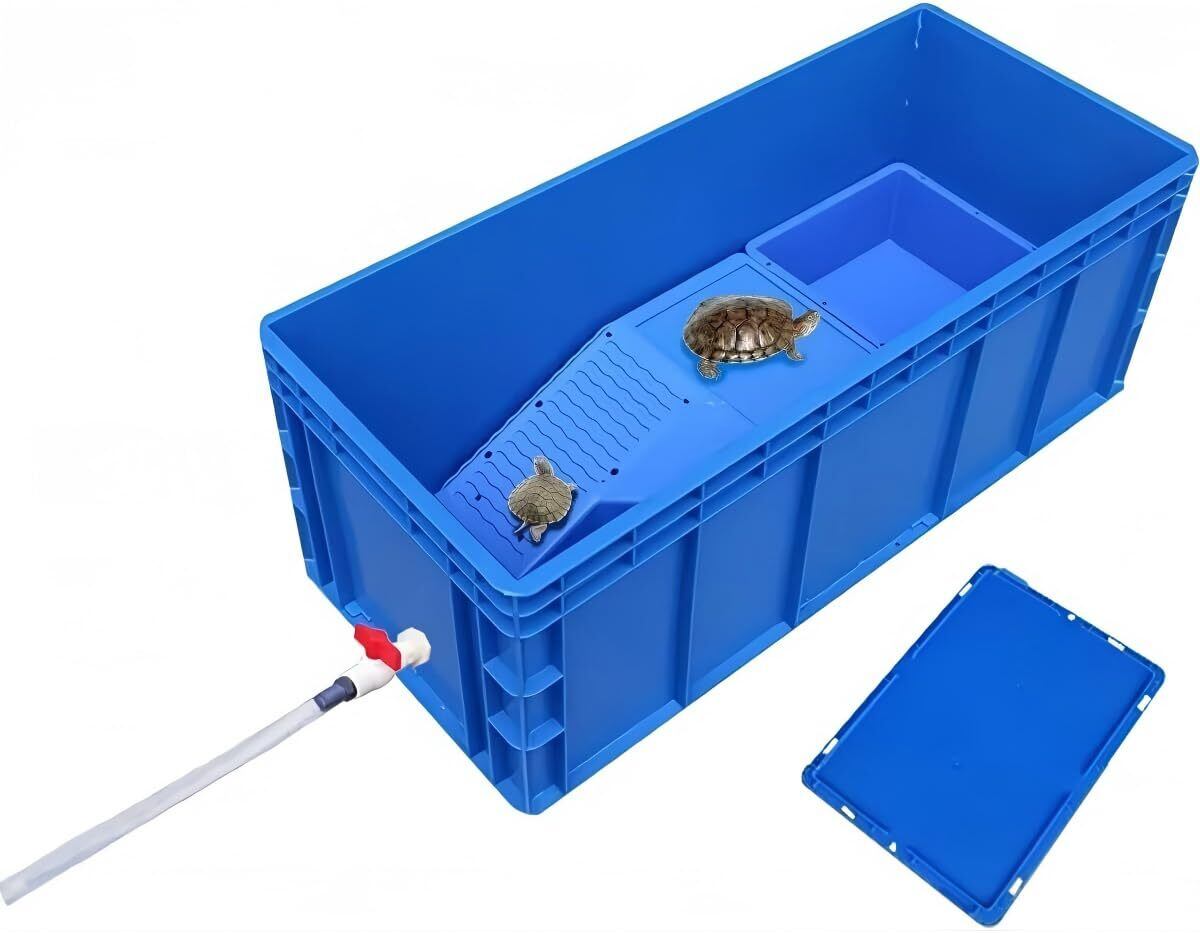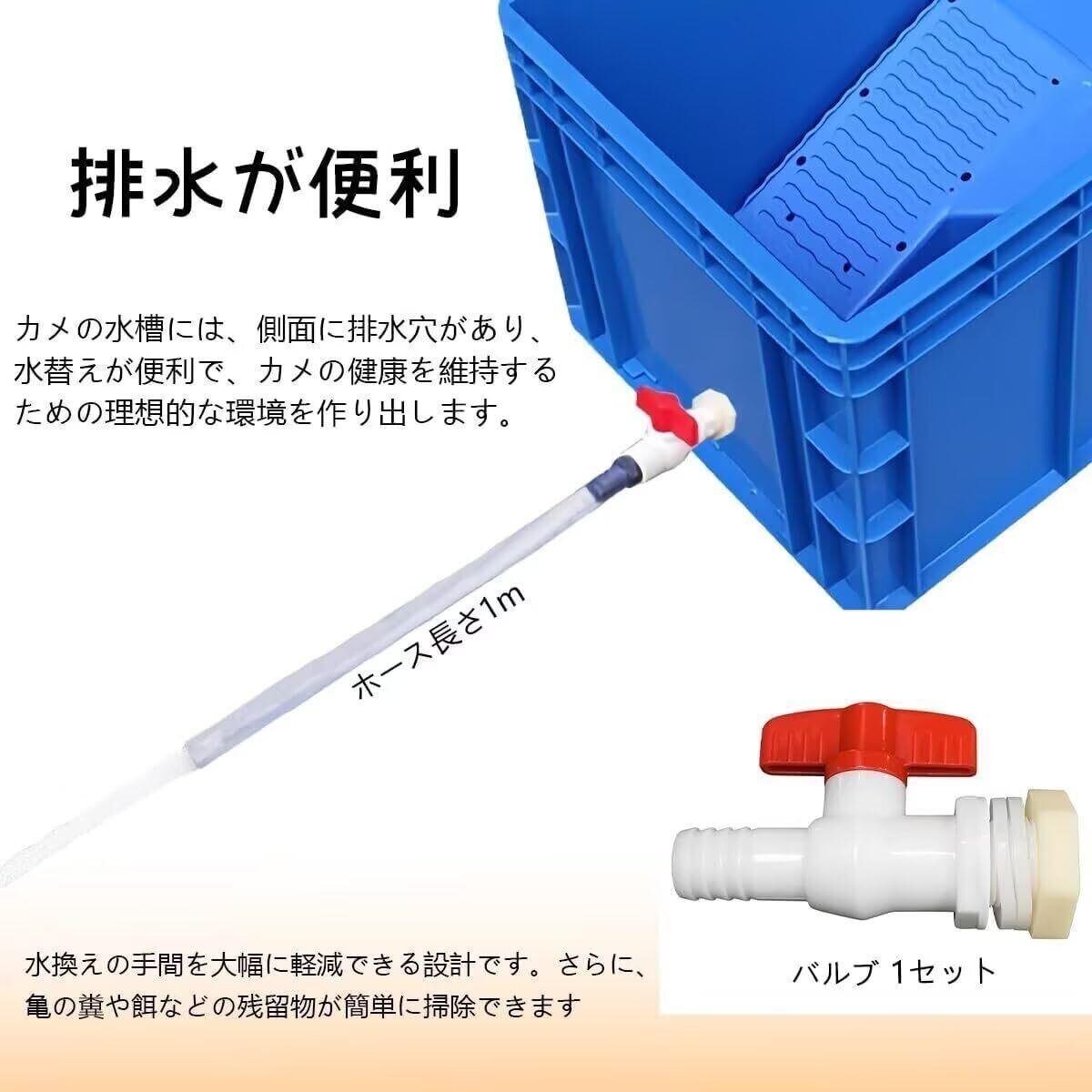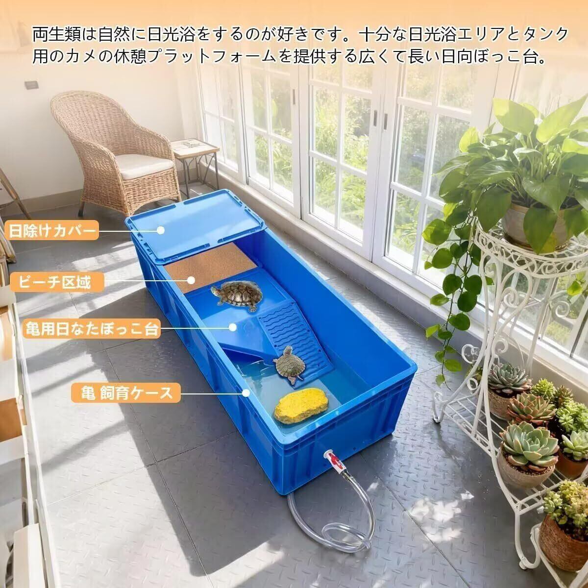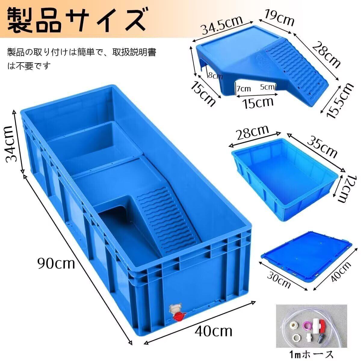 亀 水槽 大型 カメ飼育ケース 幅90*奥行き40*高さ34.8cm 亀ケージ 爬虫類ケース 両生飼育箱 蓋付き 脱走防止 排水機能 水換え簡単 耐候性 耐腐食性 日向ぼっこ台付き 多用途 亀箱 操作が簡単 ガーデン ベランダ用(青い)