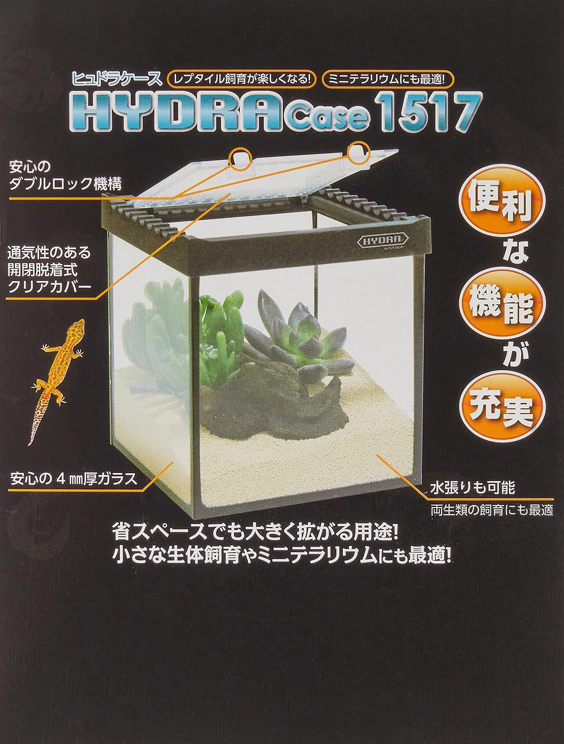 ガラス製で透明度が高く、キズつきにくい爬虫類・両生類飼育ケース