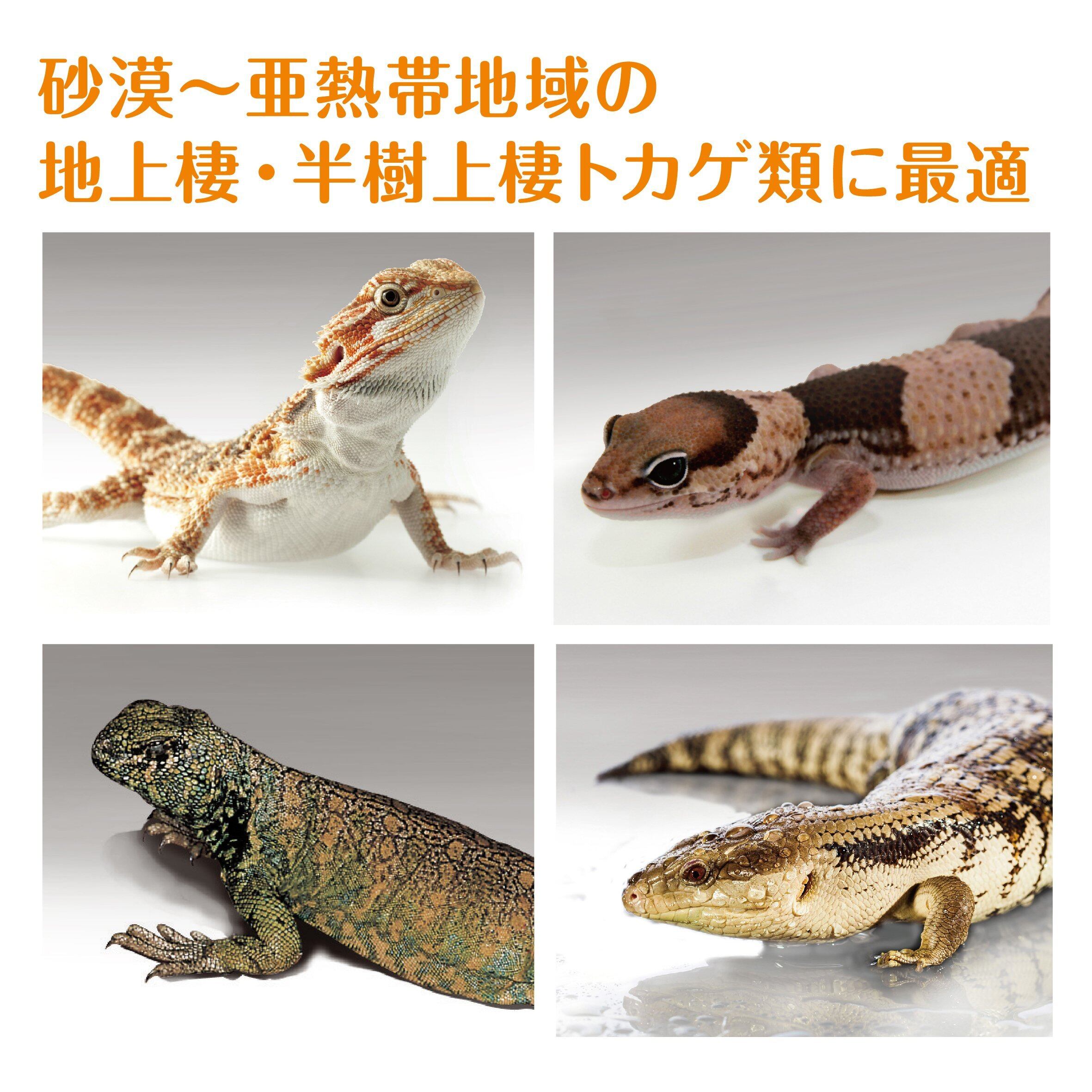敷くだけでニオわない天然素材のソイル ケージ内のイヤなニオイを吸着する、砂漠-亜熱帯に棲息する地上性・半樹上性トカゲ類に最適な床材。排泄物がまとまりやすいので掃除も簡単。 ●消臭●保湿●お掃除簡単 ケージ内のイヤな臭いを消臭! 多孔質なソイルが排泄物のニオイを吸着して抑える! 排泄物がまとまりやすく毎日のお掃除が簡単! 天然素材なので安心・安全 砂漠~亜熱帯地域に棲息する地上棲・半樹上棲トカゲ類に最適な床材。倒木や石の下のような湿気を帯びた、本来の生育環境を再現します。 生息域では倒木や石の下などやや湿った場所に棲息しているので、水分値が高いソイルの性質を活かして、本来の生育環境を再現することができます。 多孔質な状態で造粒しているソイルなので、排泄物のニオイを吸着し、ケージ内のニオイを抑えてくれます。 ソイルの保水性により、適度な湿度を保持 自然な景観を再現しやすいブラウンカラー <使用方法>・飼育ケージの底に3-5cmぐらいの厚さになるように敷いてください。・適度にソイルを水で濡らすなどして、飼育環境を整えてください。※水洗いは不要です。※ソイルは崩れやすいため、リクガメや大型のトカゲ類の飼育には適しません。※生体の種類によって床材の使用量が変わります。 <交換の目安>・フン等の排泄物は毎日取り除くと、よりよく飼育環境を維持できます。また、汚れが目立つところは、部分的に取り除いて新しいソイルと入れ換えることをおすすめします。・排泄物などによる臭いを感じられたら、新しいソイルと入れ替えてください。・種類や匹数、使用環境にもよりますが、約6か月ごとの交換が目安です。 内容量:10kg(お得な業務用タイプ)