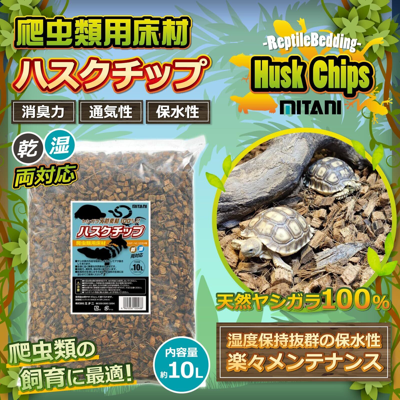 ミタニ 爬虫類用床材 ハスクチップ 10リットル BK-69 ヤシガラ 消臭力 リクガメ 生体に優しい天然素材 通気性 保水性
