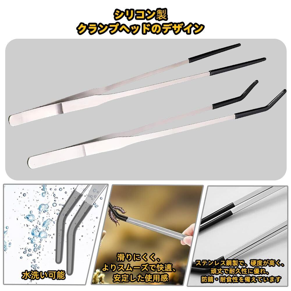 【数量限定】ピンセット 爬虫類 給餌トング 2本セット ストレート カーブ ステンレススチール ゴムチップ付き 27cm 蜥蜴 トカゲ ヘビ カエル 昆虫用 水槽 水族館 テラリウムアクセサリー 多機能 掴みやすい