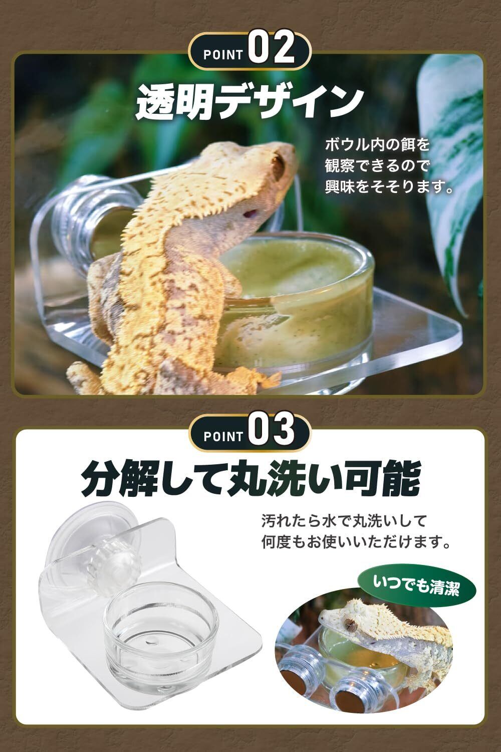 【プロ目線で考えた】 爬虫類 両生類 餌入れ 水入れ 吸盤固定タイプ 飼育用 透明ボウル 分解 丸洗い可能 衛生的
