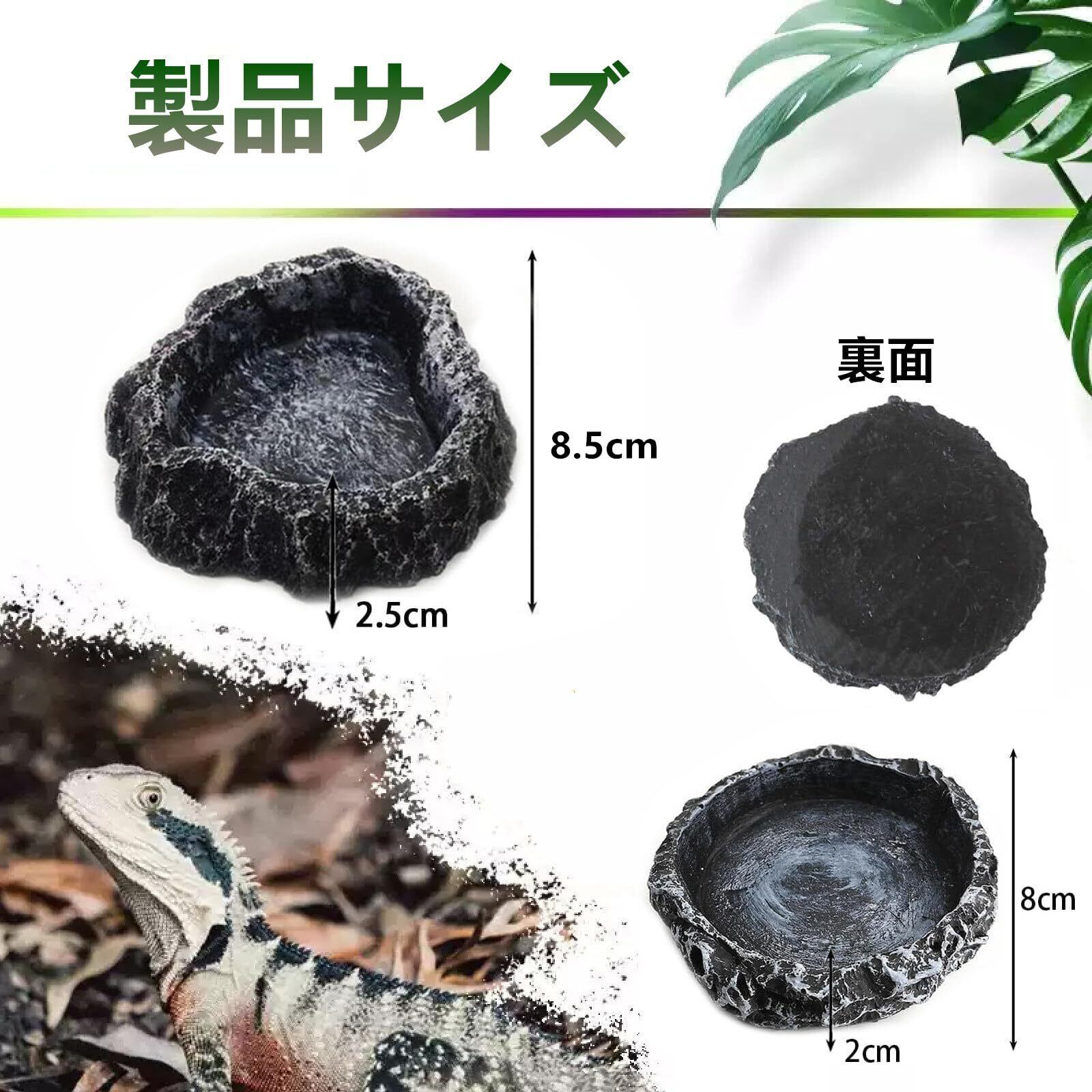 爬虫類 水入れ・餌入れ 2 個入 自然岩イメージ 樹脂製 ひっくり返しにくい 水飲み皿 エサ入れ 給餌板 食品ボウル ウォーターディッシュ カナヘビ/陸亀/トカゲ/ヤドカリ/ヤモリ 対応 飼育ケース内装用 簡単清掃