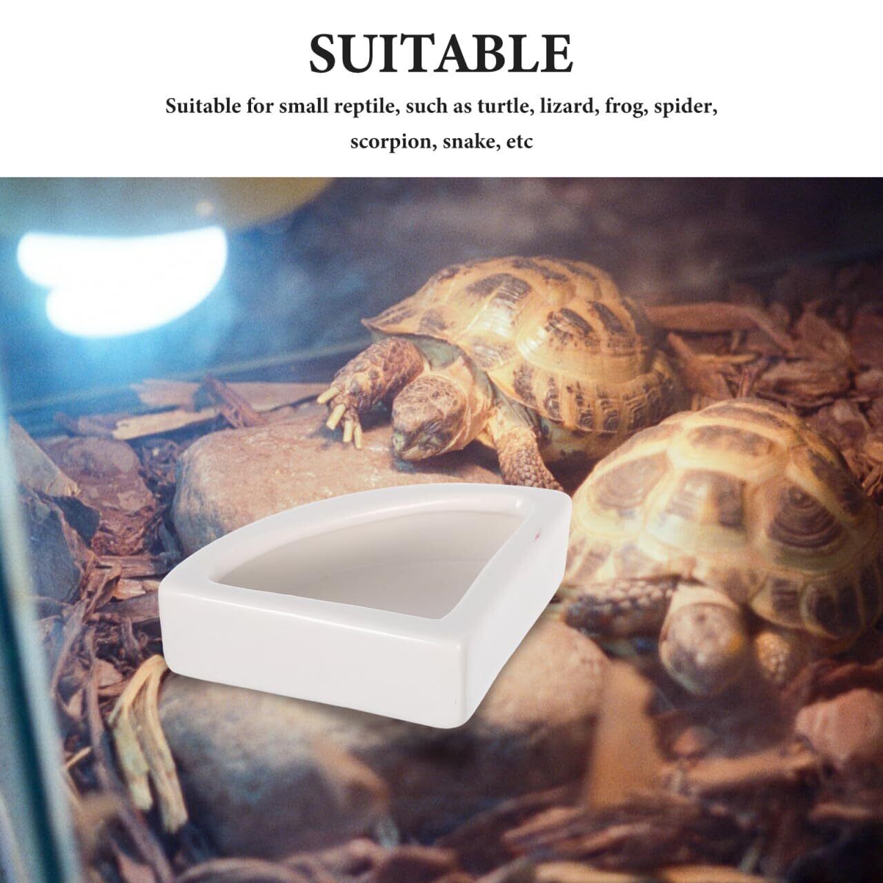 幅広い爬虫類対応:カメ、トカゲ、ヤモリ、カエル、サソリ、ヘビなど多様な小型爬虫類に適した給餌ボウルです。
