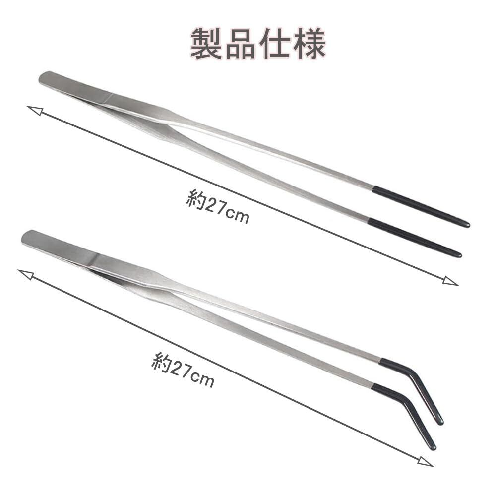 YFFSFDC 爬虫類 ピンセット ステンレス製 頑丈 長い27cm ゴムチップ付 ストレート & カーブ 爬虫類 餌やり 多機能 ペット用品 水槽 給餌用トング シルバー 2本セット