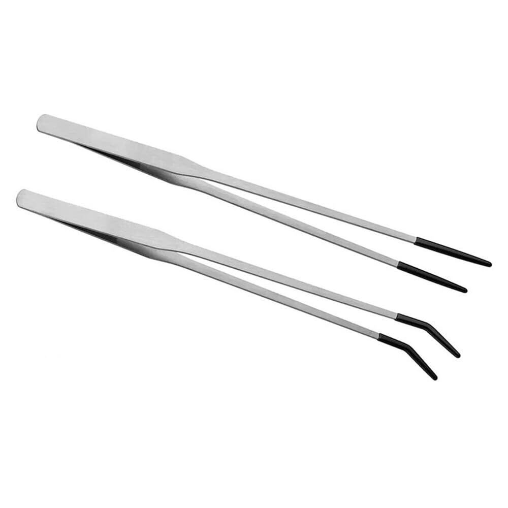 YFFSFDC 爬虫類 餌やりピン ゴムチップ付きステンレススチール 爬虫類給餌トング 27cm 蜥蜴 トカゲ ヘビ カエル 昆虫用給餌ツール ストレート&カーブ 2個セット