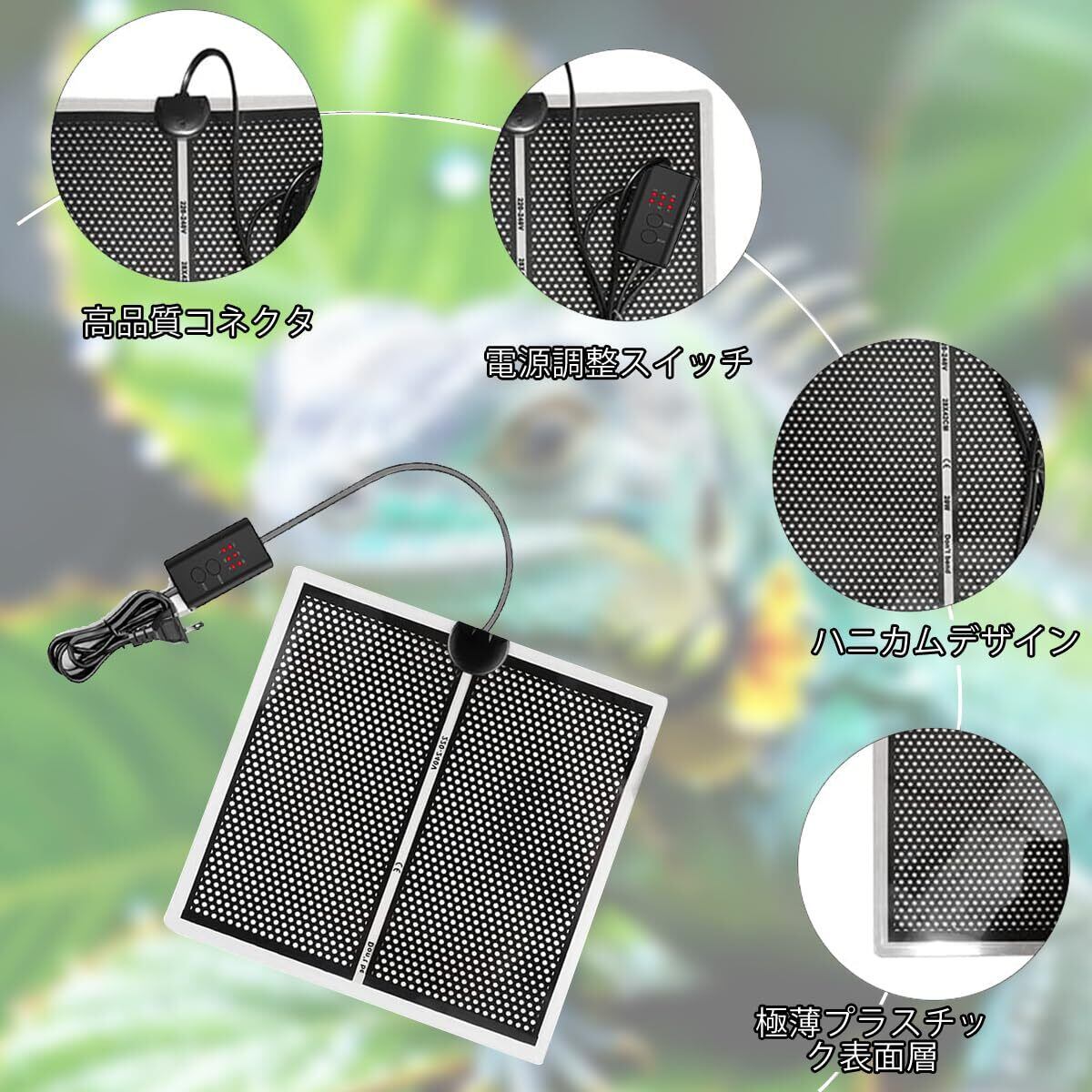 安全でバランスの取れた暖房: 爬虫類の暖房パッドは安全でバランスの取れた温度分布で、愛するペットや昆虫の繁殖に優しく暖かい熱を提供します。ご注意:爬虫類や昆虫をマットの上に直接置かないでください。