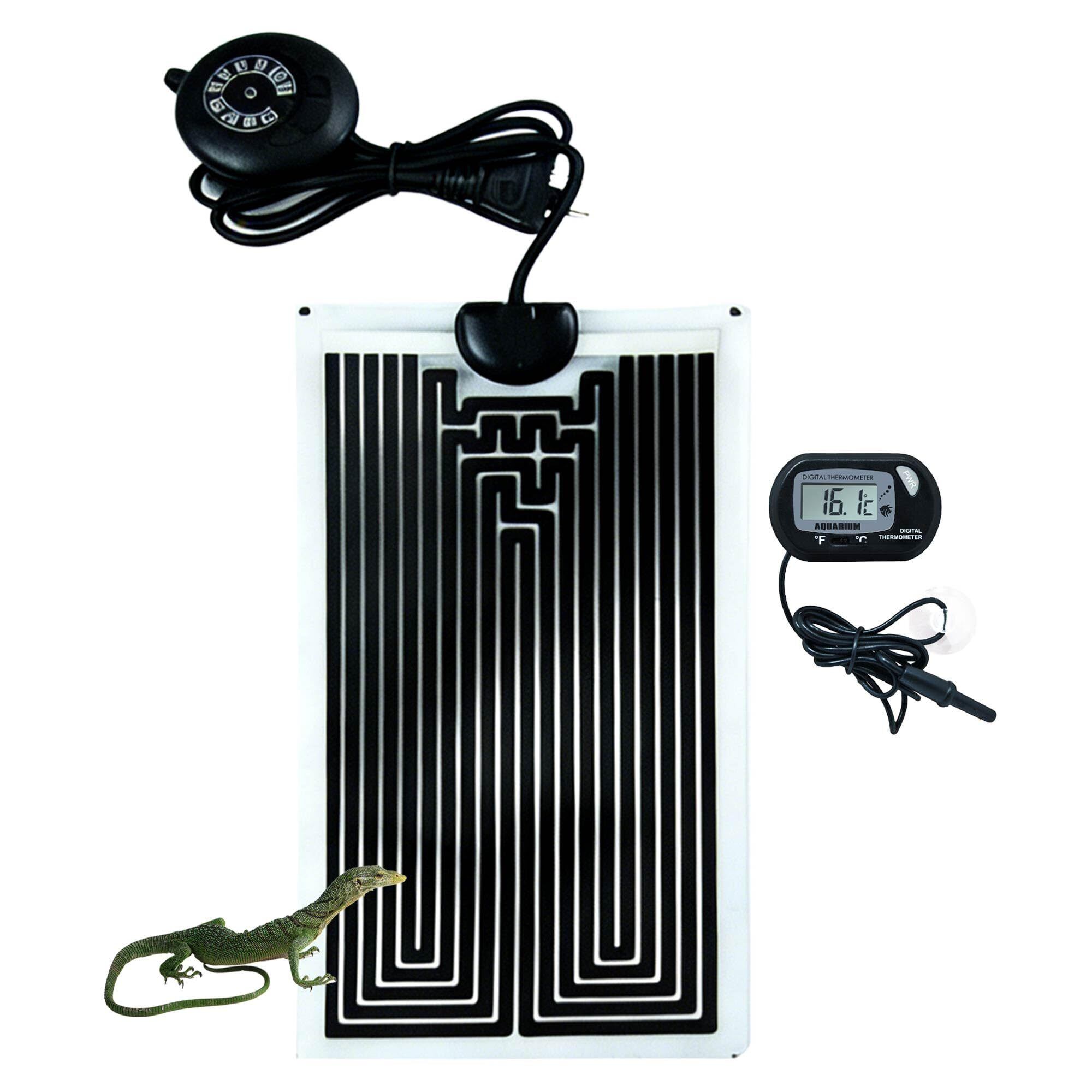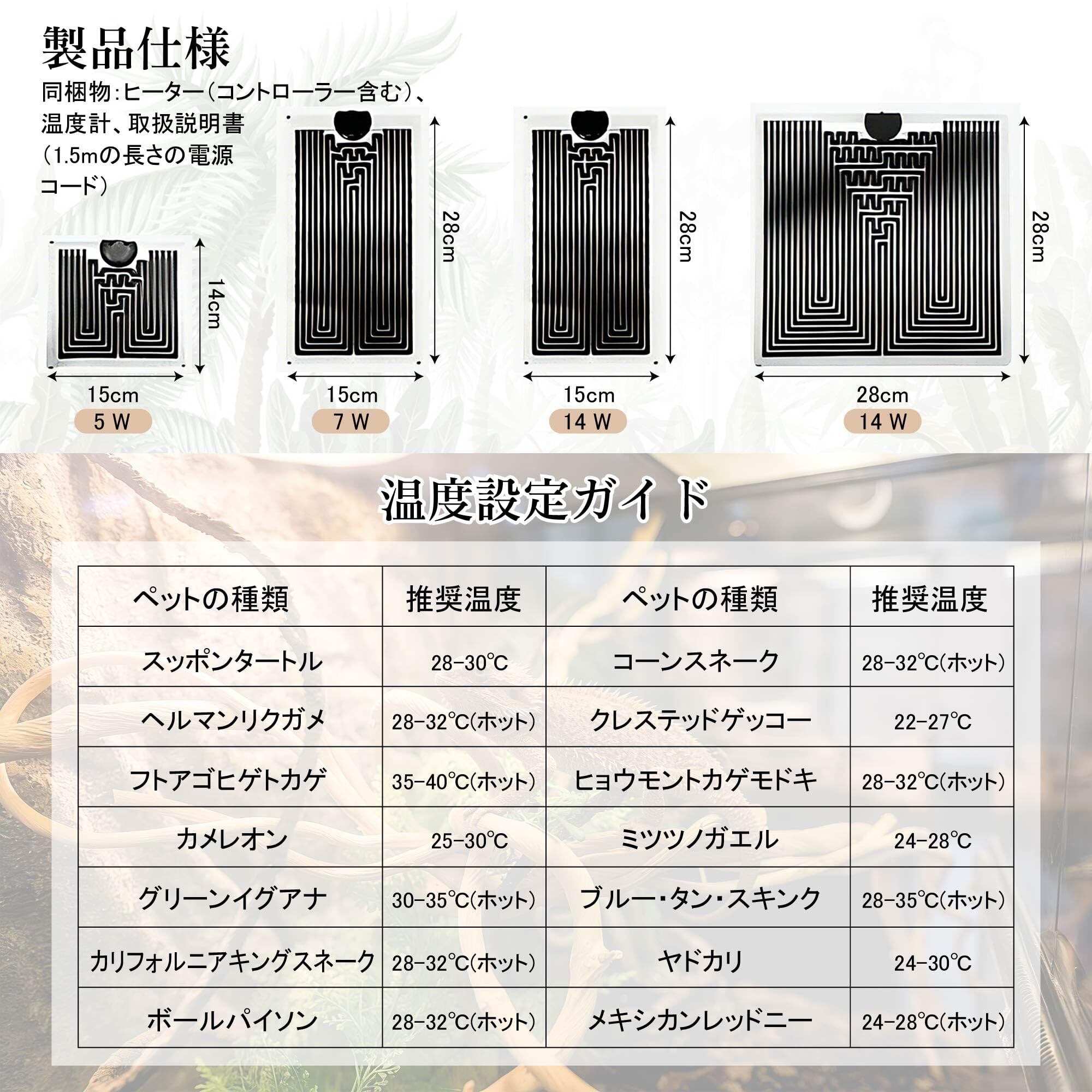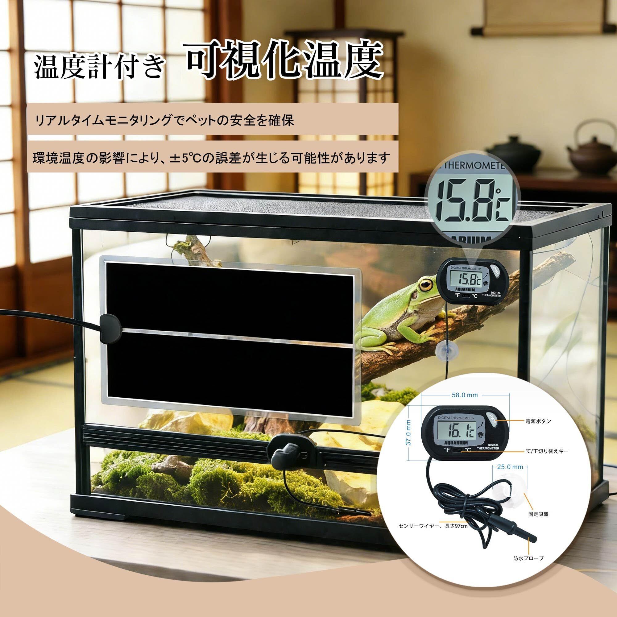 パネルヒーター 爬虫類 10段階温度調節機能付き 20-50℃ トカゲ カエル ヤモリ リクガメ対応 両生類小型ペット用加熱マット(7W, 15 x 28cm)