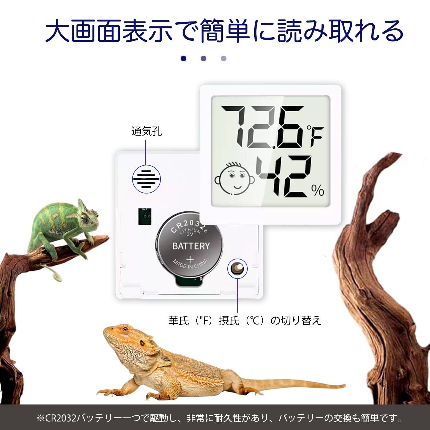 【高精度測定でペットを守る】温湿度計は、温度範囲-19.9℃~70℃、湿度範囲10%~99%をカバーし、温度測定精度±1℃、湿度測定精度±5%の高精度を実現。爬虫類の飼育環境を正確に把握できます。温度と湿度の管理が、ペットに最適な生活環境を提供します。