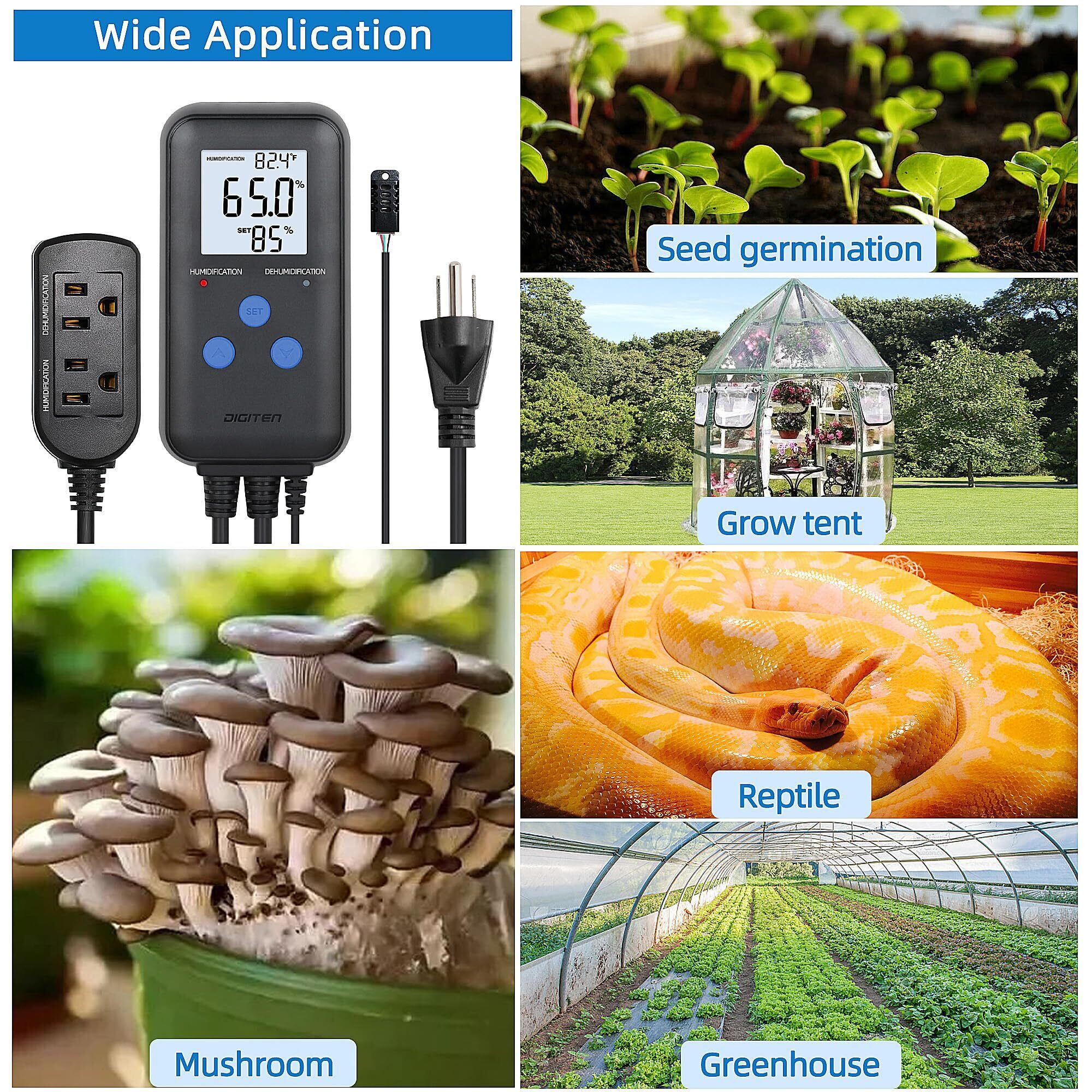 【人気商品】デジタル湿度コントローラー、有線湿度制御デュアルステージコンセント、キノコ栽培、爬虫類、栽培テント、加湿器/除湿機用