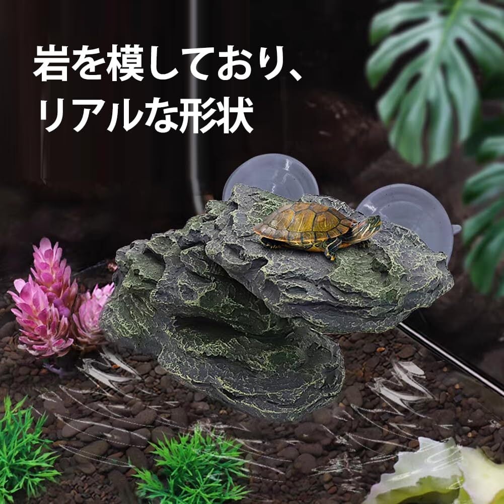 【本物そっくり】亀用日光浴プラットフォームは岩を模しており、リアルな形状で、あらゆる水槽や爬虫類テラリウムにぴったりフィットし、ペットに自然の雰囲気を与えます。