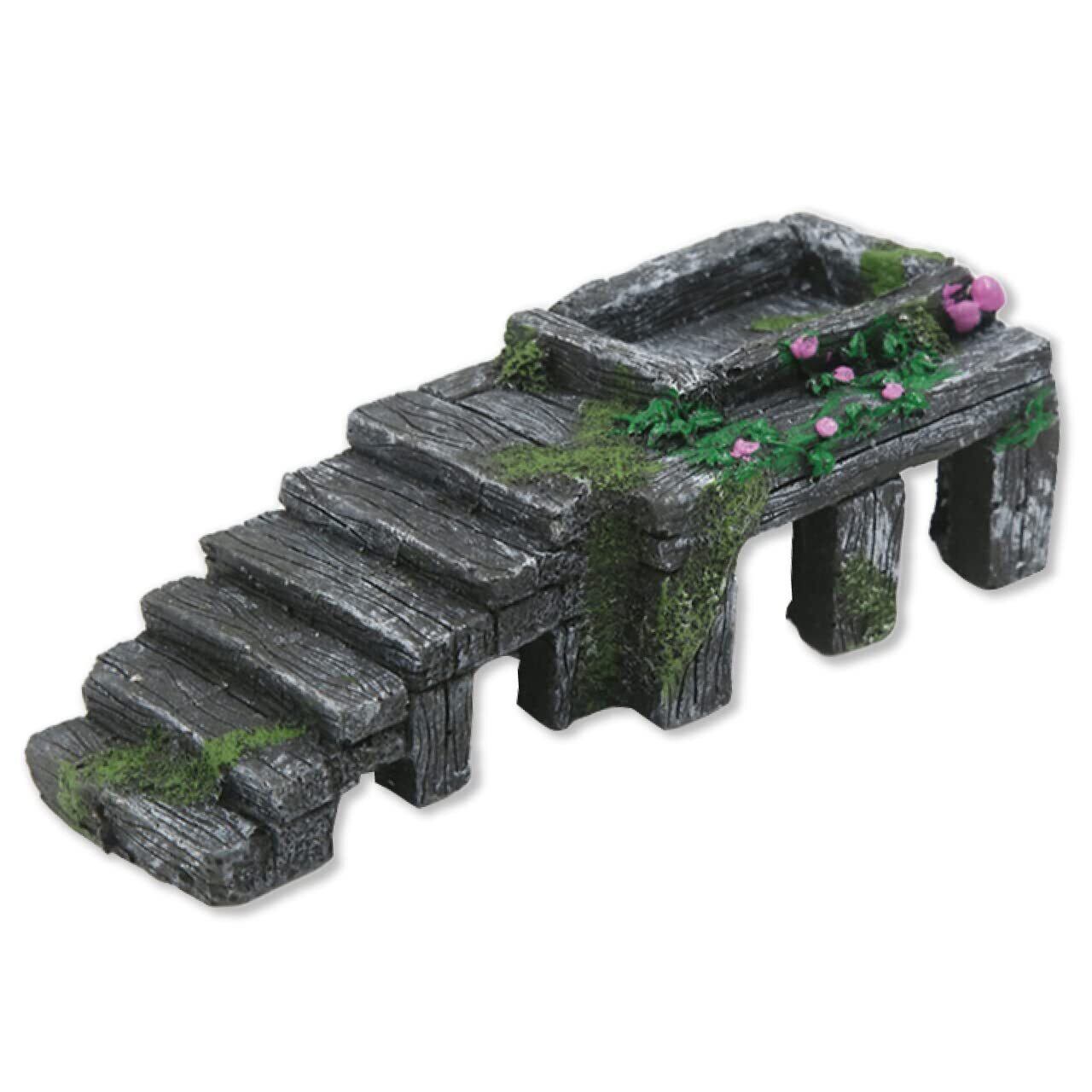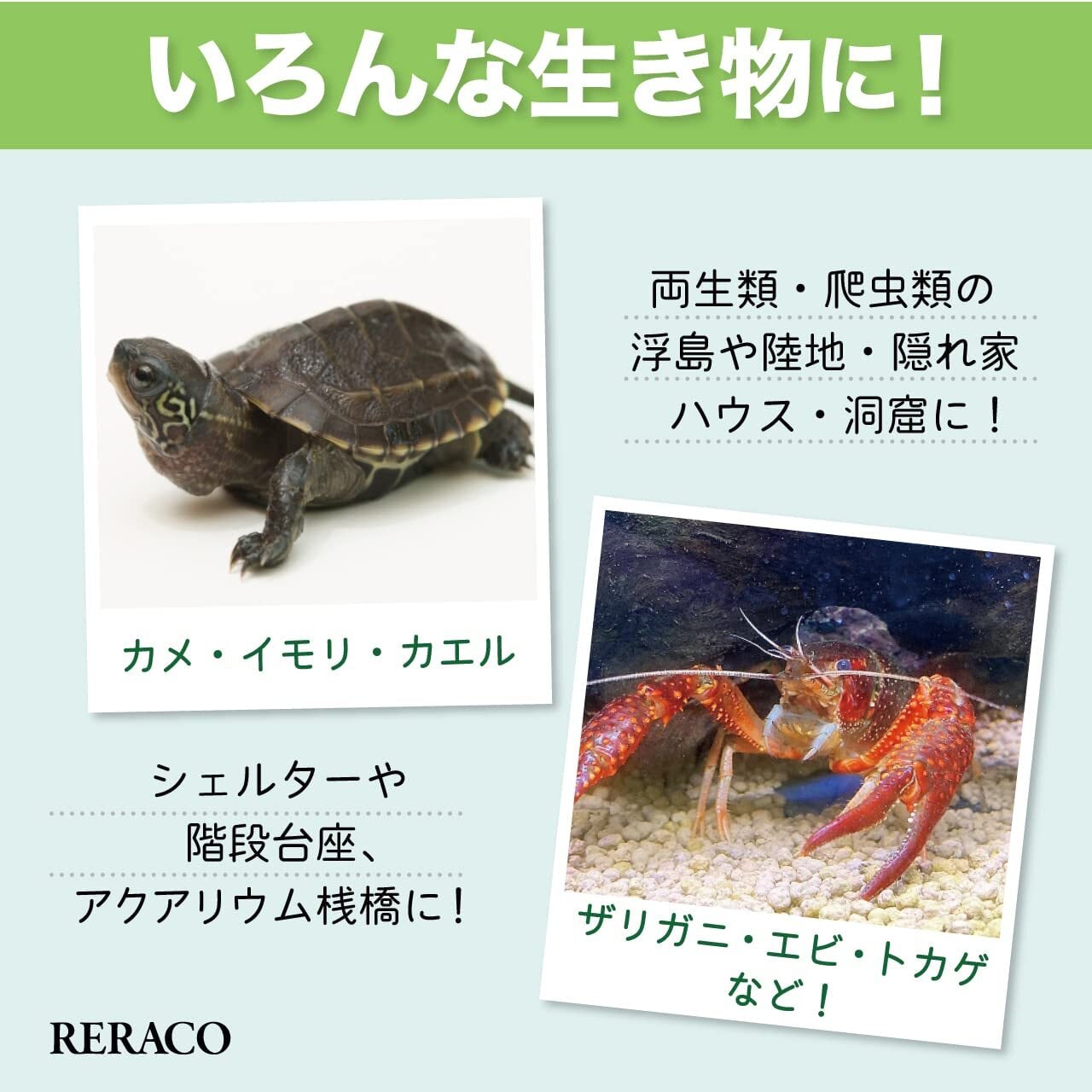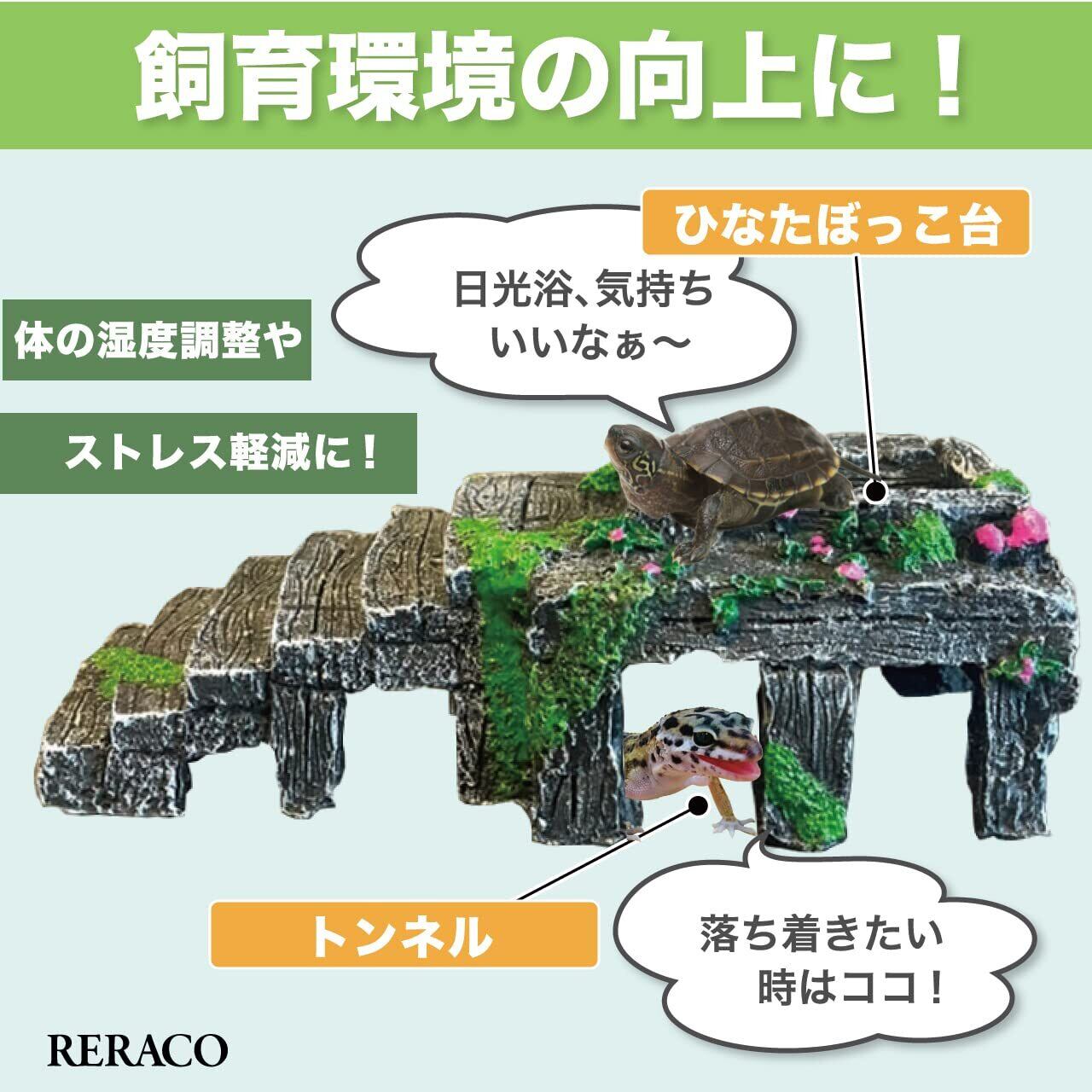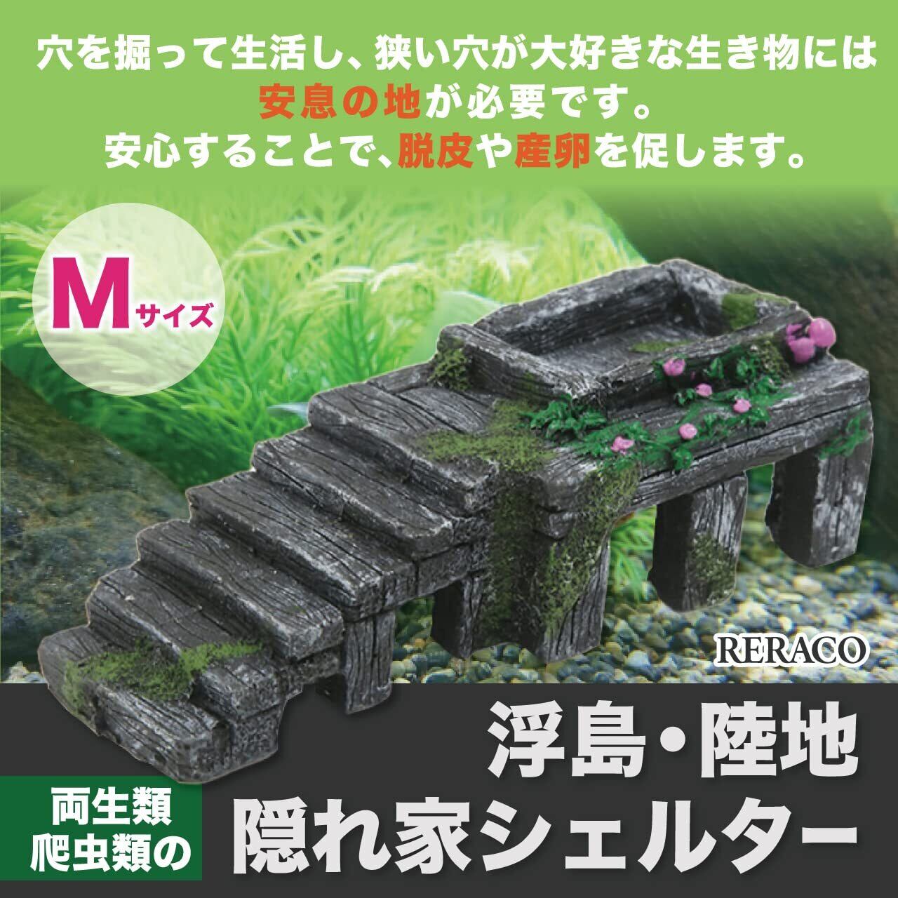 RERACO アクアリウム 両生類 爬虫類 亀 浮島 隠れ家 小型 シェルター 階段 日光浴 石 岩 台 台座 トンネル 小 桟橋(M)