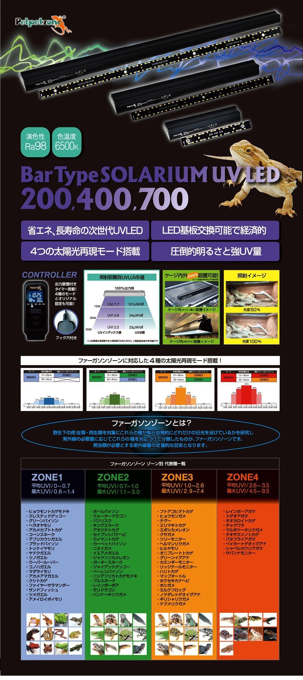 ゼンスイ バータイプ ソラリウム UVLED Bar Type SOLARIUM UVLED 700 出力調整 タイマー機能 UVライト 爬虫類 両生類用 照明