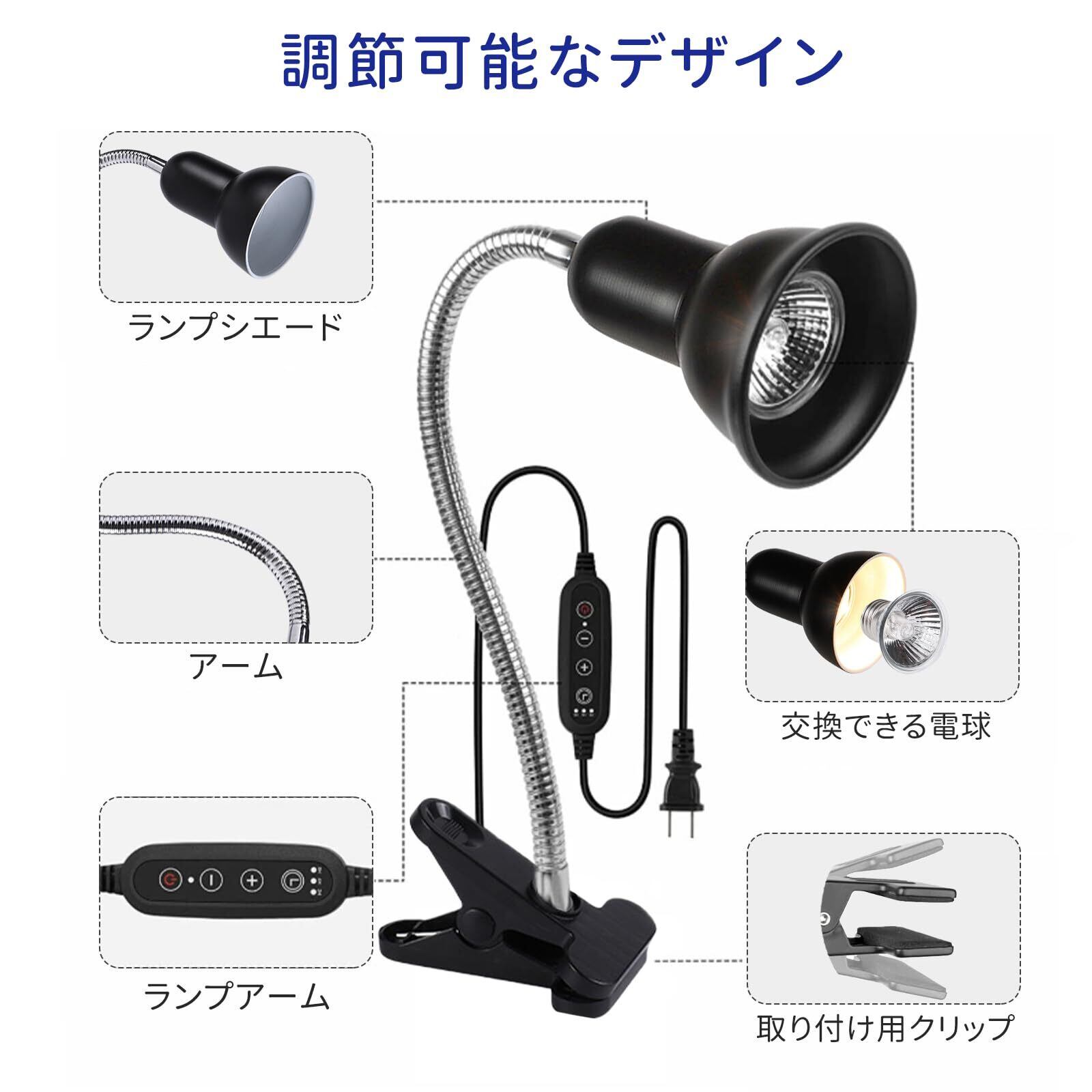 【明るさは5段階調整可能】光が1段階から5段階まで徐々に明るくなります。1回押すと20%の明るさ、2回押すと40%の明るさ、3回押すと60%の明るさ、4回押すと80%の明るさ、5回押すと100%の明るさになります。25W/50W対応、爬虫類の種類や成長段階に合わせて最適な環境を提供。