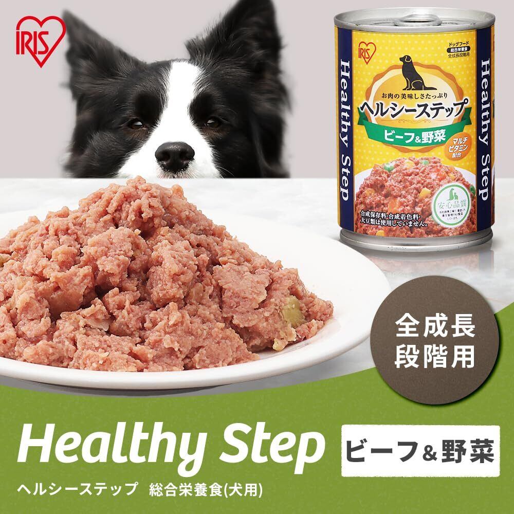 アイリスオーヤマ ヘルシーステップ ドッグフード 総合栄養食 ビーフ&野菜 合成着色料・合成保存料不使用 375g×24個セット