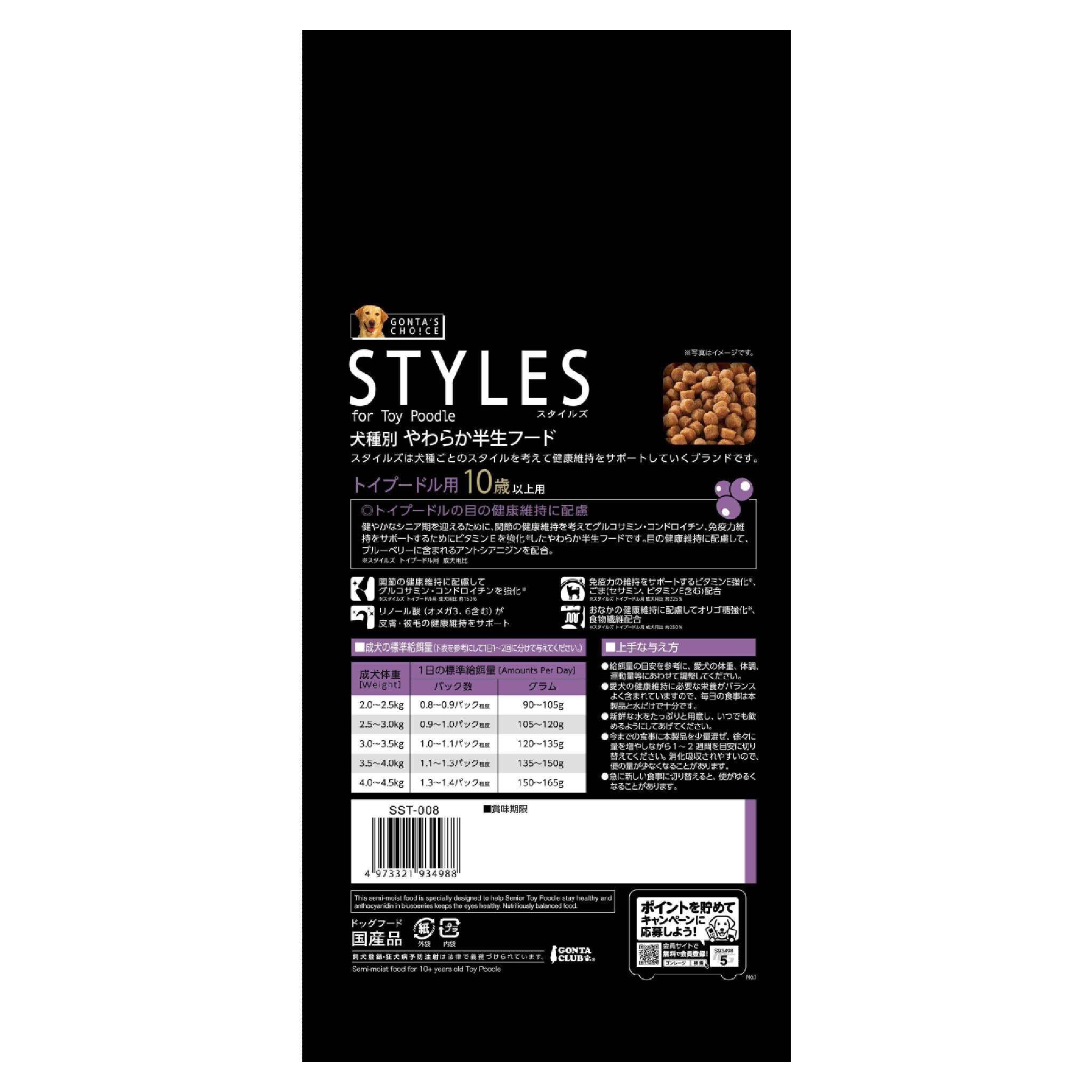 【数量限定】サンライズ スタイルズ トイ・プードル用 10歳以上用 1.2㎏ 犬種別 やわらか半生フード 総合栄養食 国産 無着色 小分け