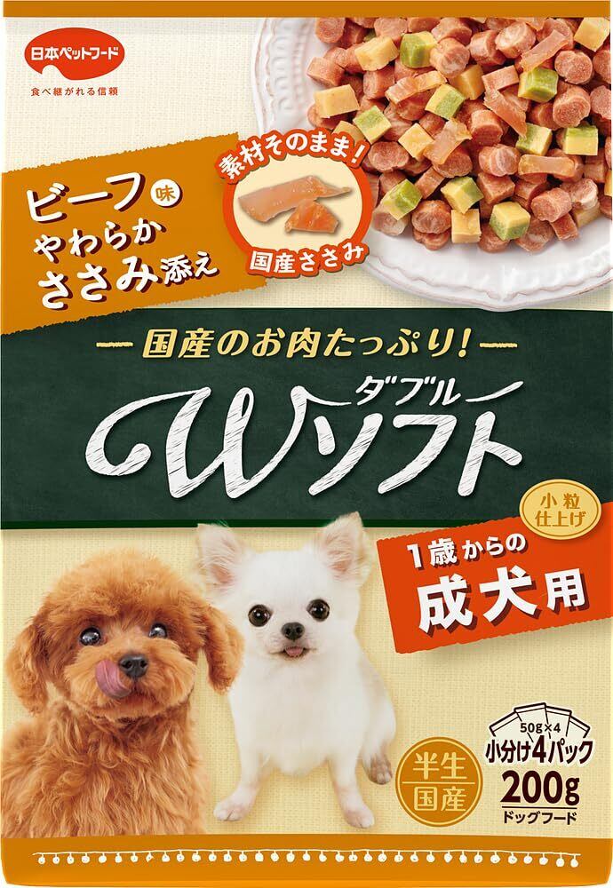【2022最新】ビタワン君のWソフト 成犬用 【半生タイプ】 【たっぷりお肉】 【国産】 【小分包装】 ドッグフード お肉を味わうビーフ味粒・やわらかささみ 犬 200g