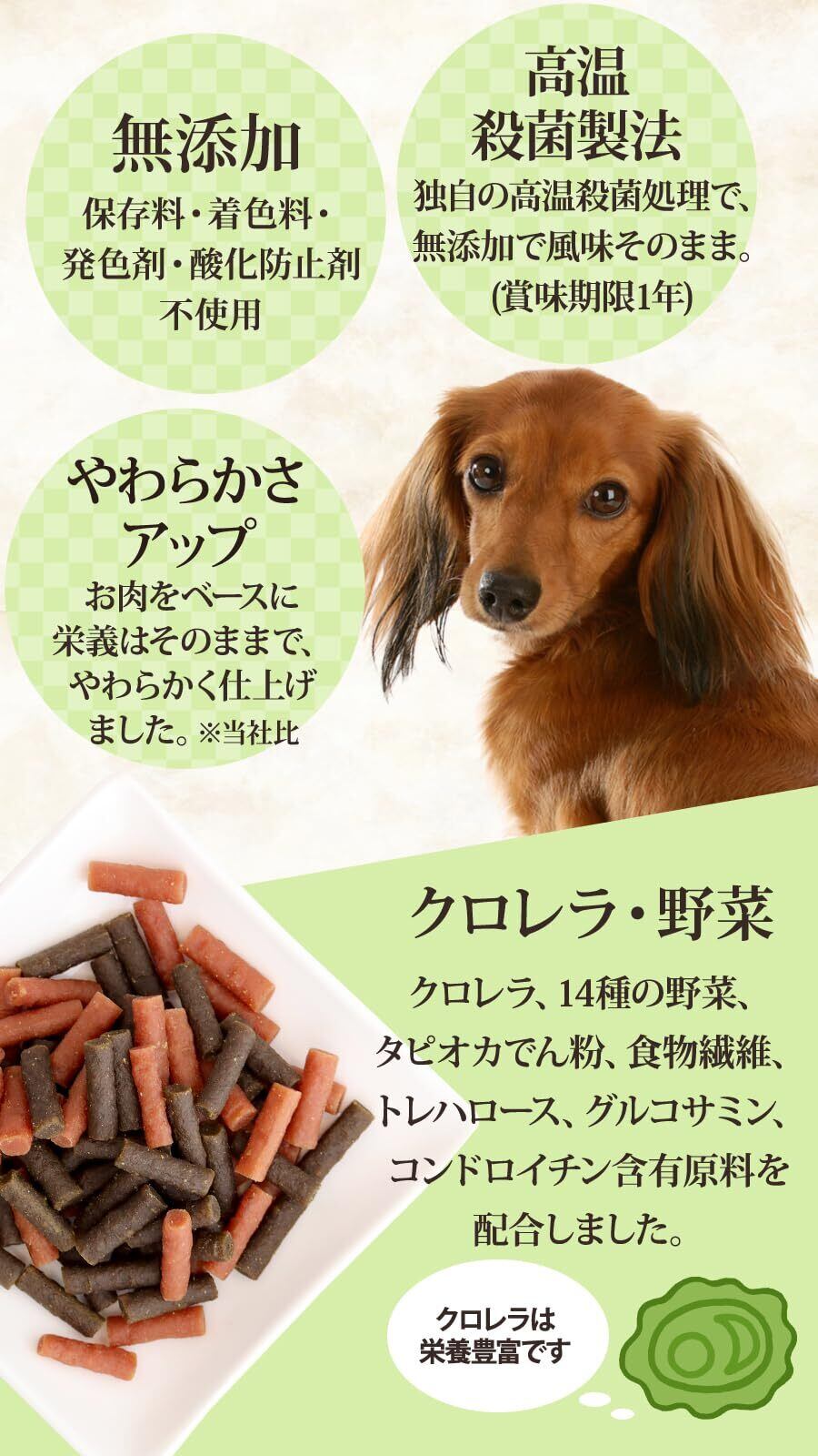 クロレラと14種の野菜を配合した、体にやさしい主食です。 保存料・着色料を使っていませんので、デリケートな愛犬に適しています。