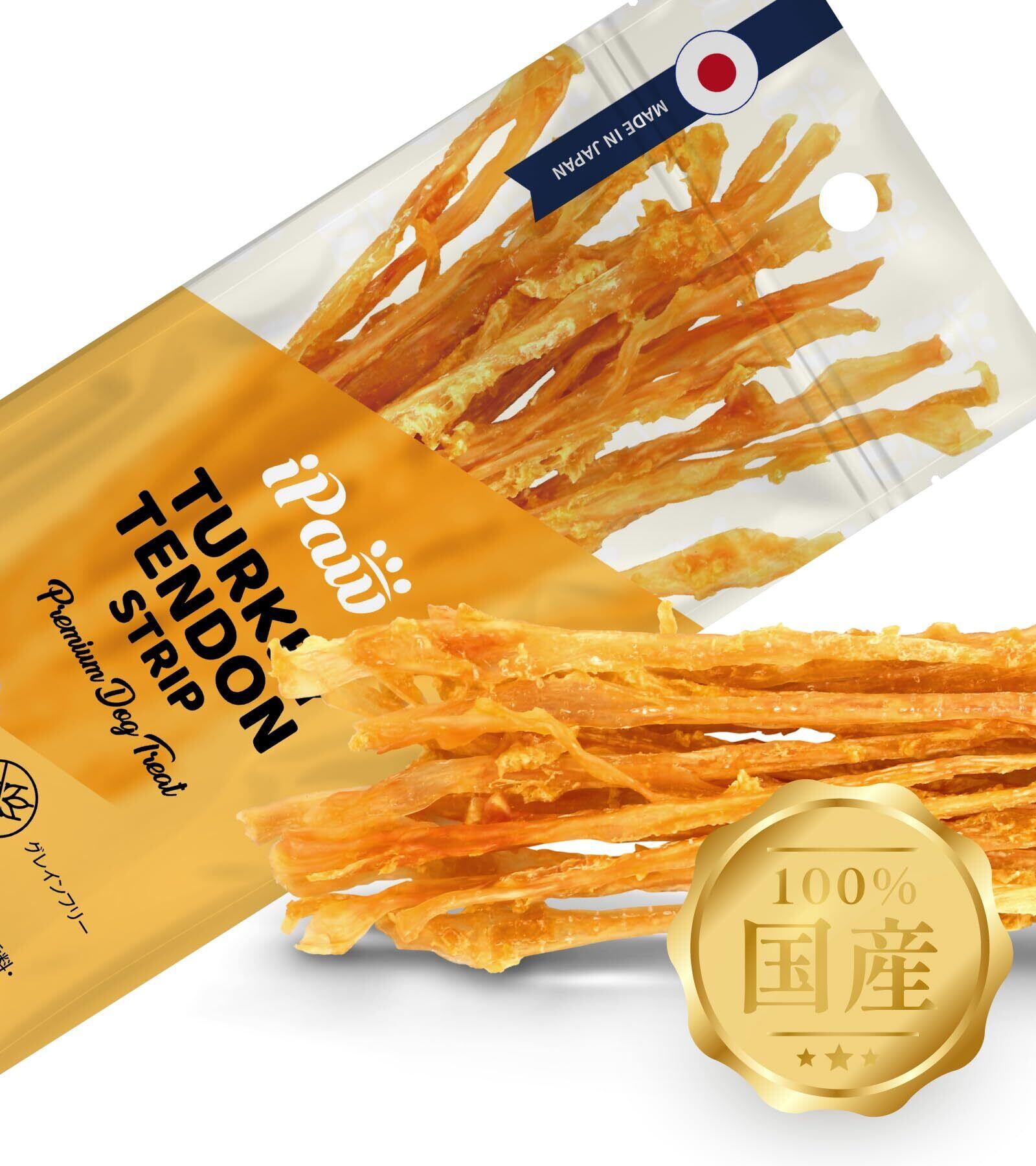 【こだわりの国産加工ターキーアキレス】 iPawのターキーアキレスは、高品質のアメリカ産七面鳥を使用し、1羽からわずか2本しか取れない希少なすじ部位を贅沢に使用しています。日本国内の工場にて、1本ずつ手作業で丁寧に仕上げ、低温調理でじっくり乾燥させることで、栄養とターキー本来の旨みをそのまま閉じ込めました。噛むほどに広がる、ワンちゃんが止められない美味しさ!ご褒美としてはもちろん、日常のおやつにもぴったりの逸品です。