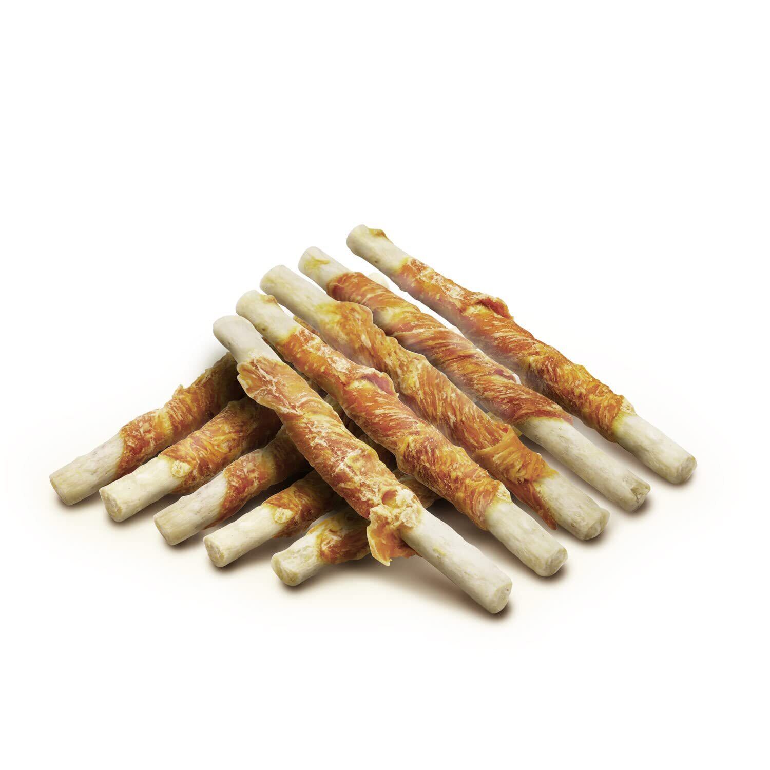 噛みごたえのある牛皮ガムにササミを巻いたガムスナック。