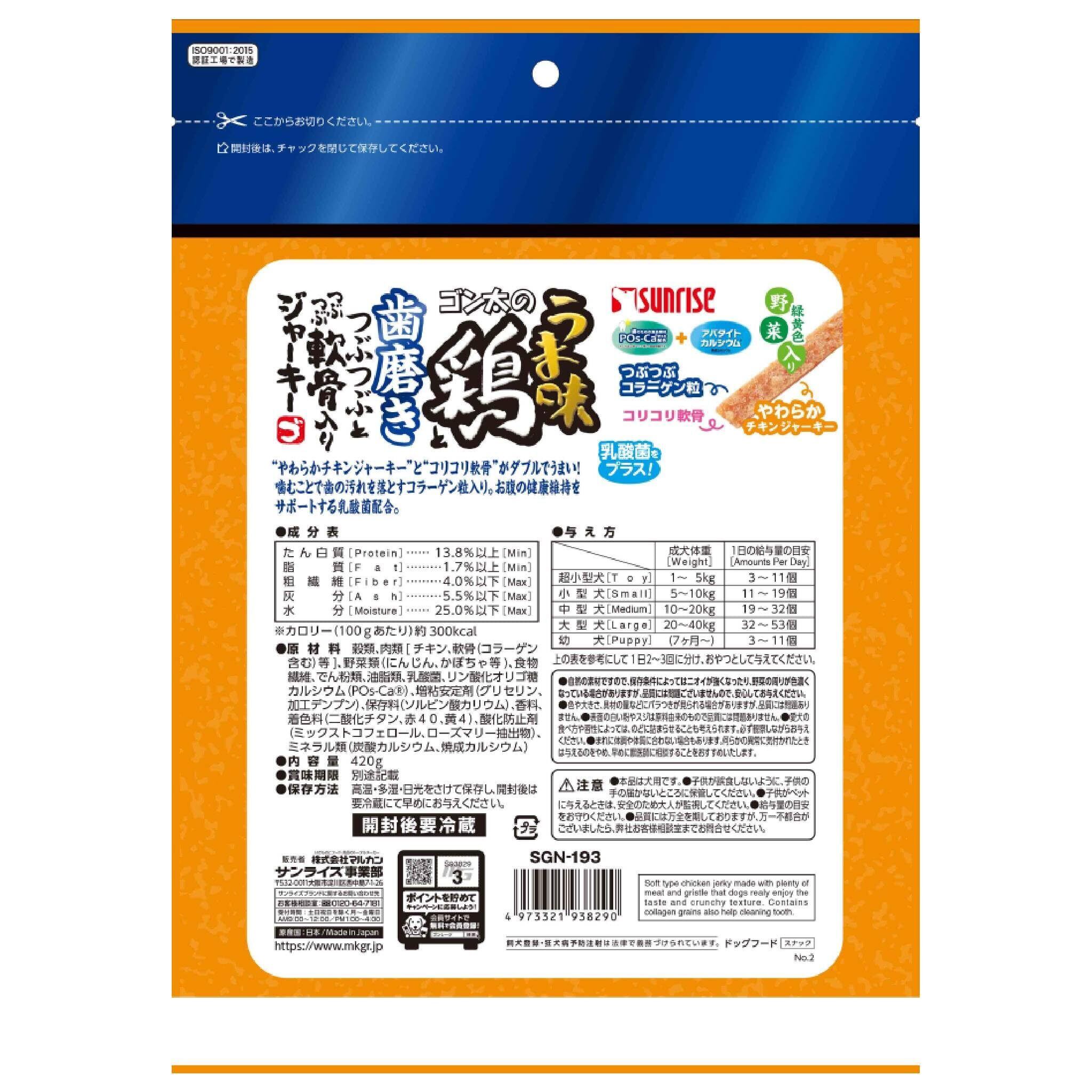 ゴン太のうま味鶏 歯磨きつぶつぶとつぶつぶ軟骨入りジャーキー 緑黄色野菜入り 420g チキン 犬用おやつ