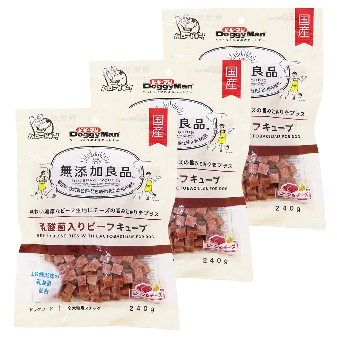 ドギーマン 犬用おやつ 無添加良品 乳酸菌入りビーフキューブ 240g×3袋 240グラム (x 3)