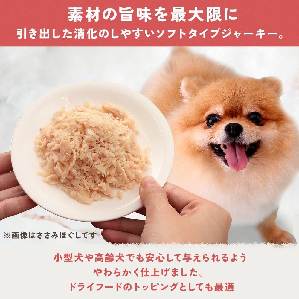 素材の旨味を最大限に引き出した消化のしやすいソフトタイプジャーキーです。小型犬や高齢犬でも安心して与えられるようとてもやわらかく仕上げました。高たんぱく低脂肪の砂肝をまるごと姿干しにしました。