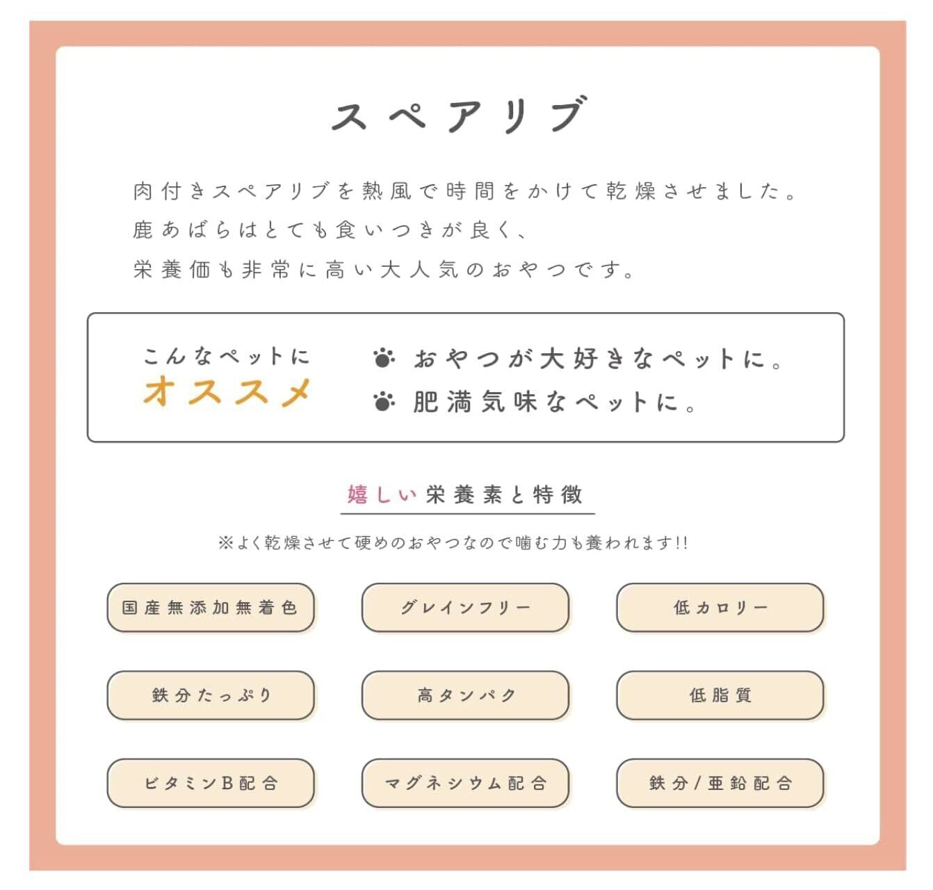 鹿スペアリブ ショート 犬のおやつ 無添加 無着色 国産 日本製 犬 ペット おやつ (90g)