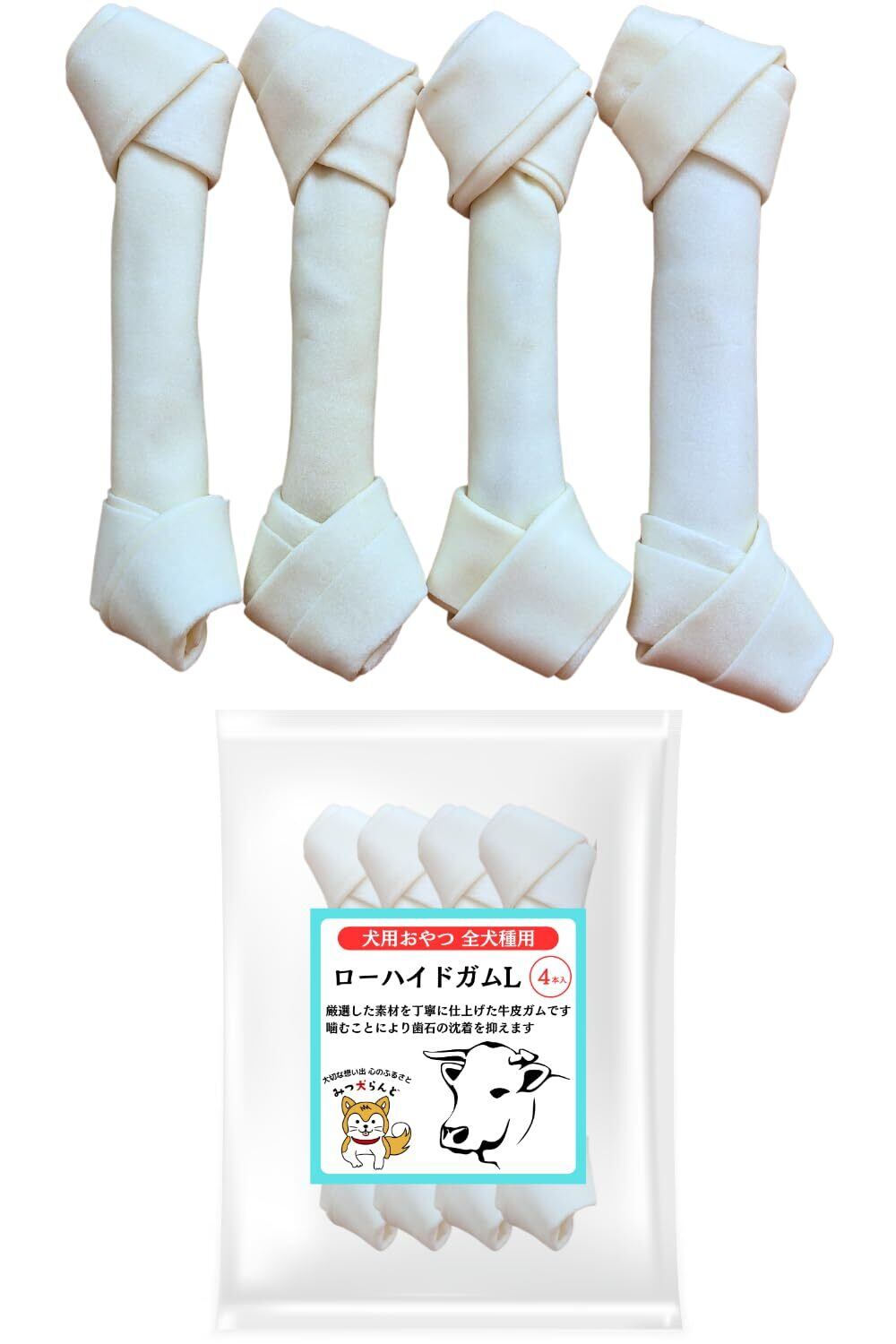 【初トライ応援/賞味期限保証あり】みつ犬らんど 牛皮ガム 犬 歯磨き用ガム 噛むおやつ ローハイドガム おやつ (Lサイズ・4本)