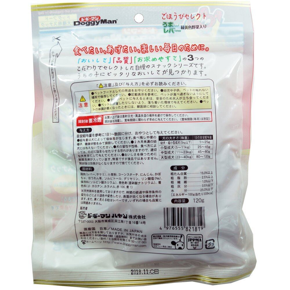 【在庫セール】ドギーマン 犬用おやつ ごほうびセレクト うまい! レバースナック 緑黄色野菜入り チキン 120グラム (x 2) (まとめ買い)