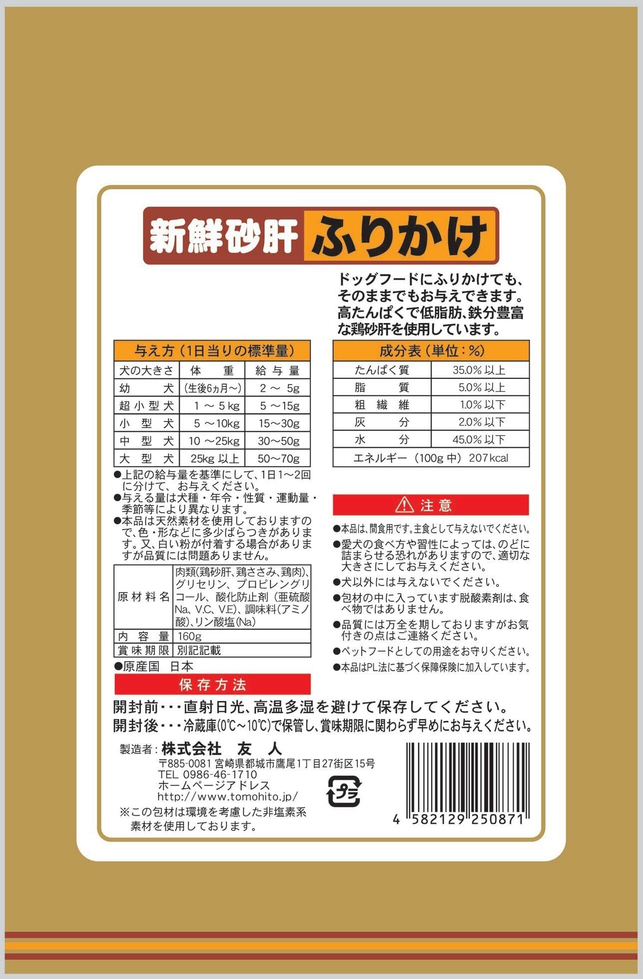 【在庫処分】友人 新鮮砂肝 ふりかけ160g